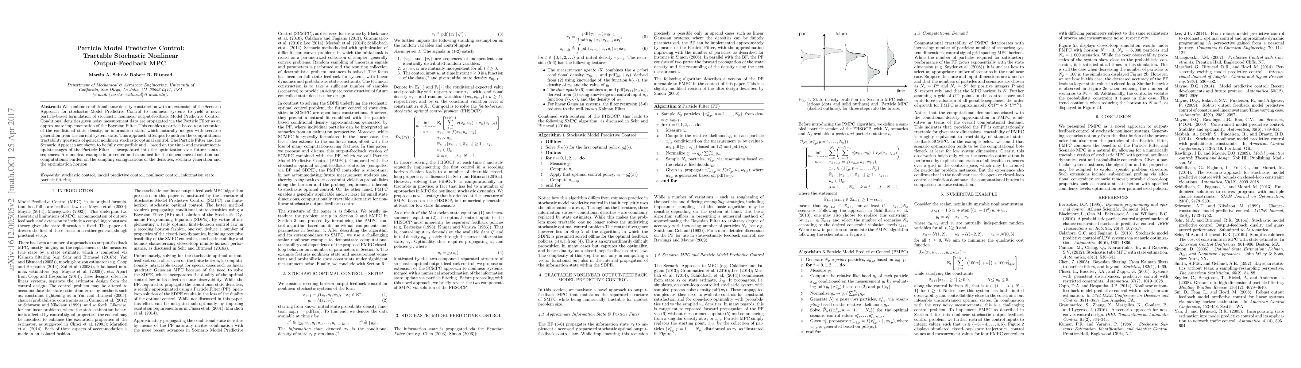 This paper proposes a novel particle-based stochastic nonlinear output-feedback Model Predictive Control (MPC) method that combines conditional state density construction with the Scenario Approach. The Particle Filter approximates the Bayesian Filter to propagate conditional densities, enabling optimization over future control sequences and addressing computational challenges in nonlinear stochastic control.