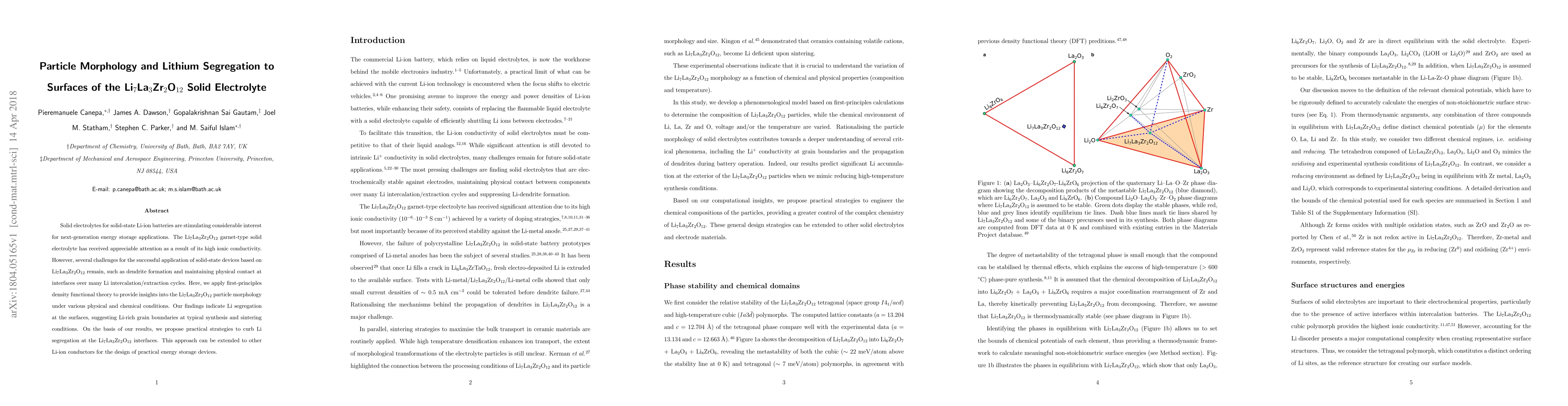 This paper investigates the particle morphology and lithium segregation in Li$_7$La$_3$Zr$_2$O$_{12}$ solid electrolyte using first-principles density functional theory. It finds lithium segregation at the surfaces, leading to Li-rich grain boundaries, and proposes strategies to mitigate this issue for better solid-state Li-ion battery performance.