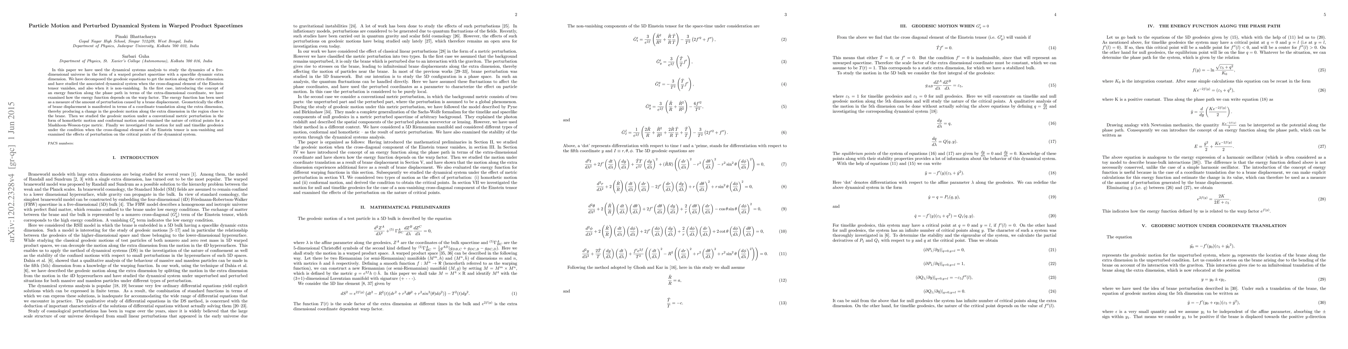 The paper presents a detailed analysis of geodesic motion in warped product spacetimes under perturbations, introducing an energy function to quantify brane displacement effects.