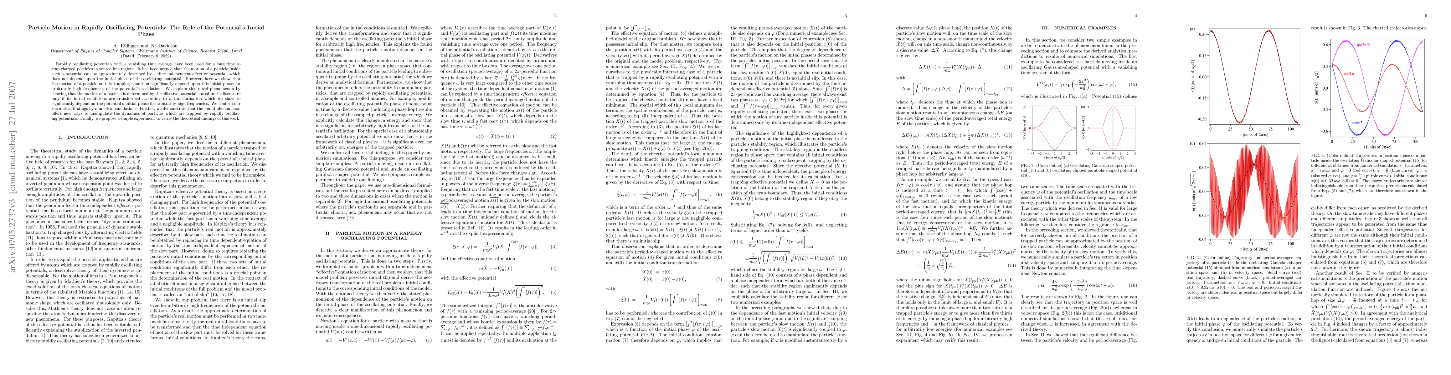 This paper demonstrates that the initial phase of a rapidly oscillating potential significantly influences particle motion and trapping conditions, contrary to previous assumptions. The authors propose a transformation-dependent effective potential and validate their findings through numerical simulations, suggesting new methods for particle manipulation and proposing a simple experimental verification.
