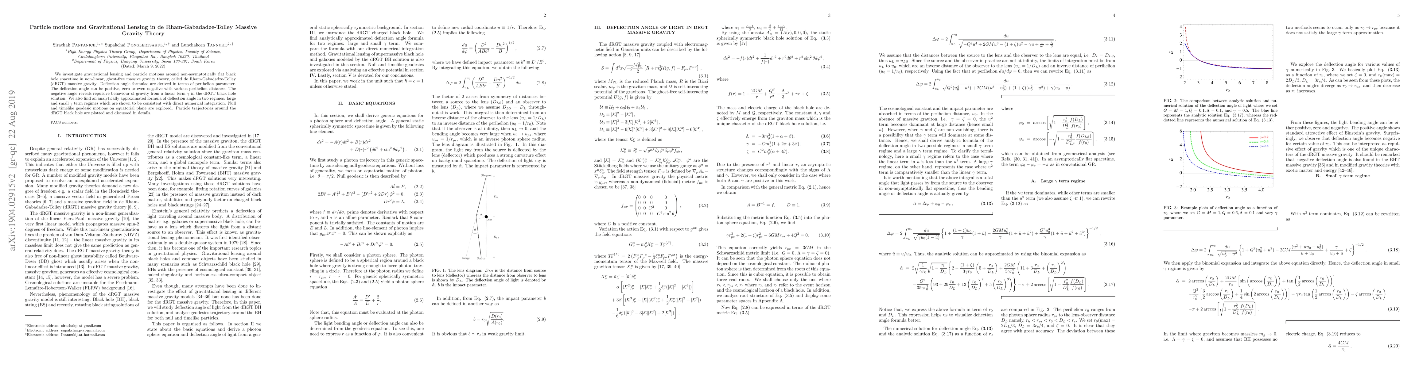 This paper explores gravitational lensing and particle motions in the context of de Rham-Gabadadze-Tolley (dRGT) massive gravity, deriving deflection angle formulae that can be positive, zero, or negative, indicating repulsive gravitational effects. It also provides analytical approximations for deflection angles and examines null and timelike geodesic motions in the equatorial plane.