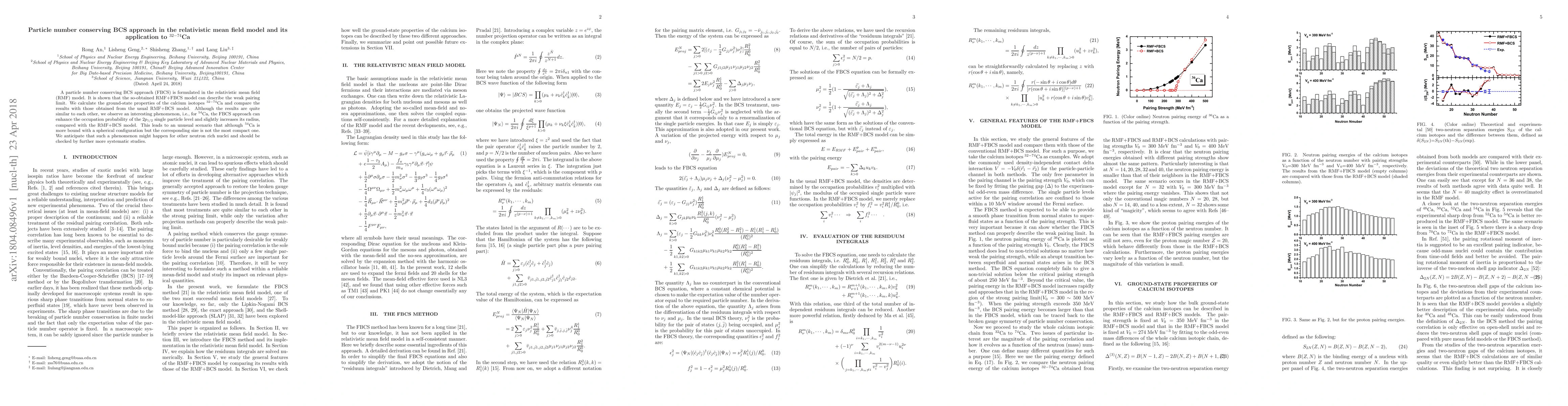 A particle number conserving BCS approach (FBCS) is formulated in the relativistic mean field (RMF) model. It is shown that the so-obtained RMF+FBCS model can describe the weak pairing limit. We calculate the ground-state properties of the calcium isotopes $^{32-74}$Ca and compare the results with those obtained from the usual RMF+BCS model. Although the results are quite similar to each other, we observe an interesting phenomenon, i.e., for $^{54}$Ca, the FBCS approach can enhance the occupation probability of the $2p_{1/2}$ single particle level and slightly increases its radius, compared with the RMF+BCS model. This leads to an unusual scenario that although $^{54}$Ca is more bound with a spherical configuration but the corresponding size is not the most compact one. We anticipate that such a phenomenon might happen for other neutron rich nuclei and should be checked by further more systematic studies.