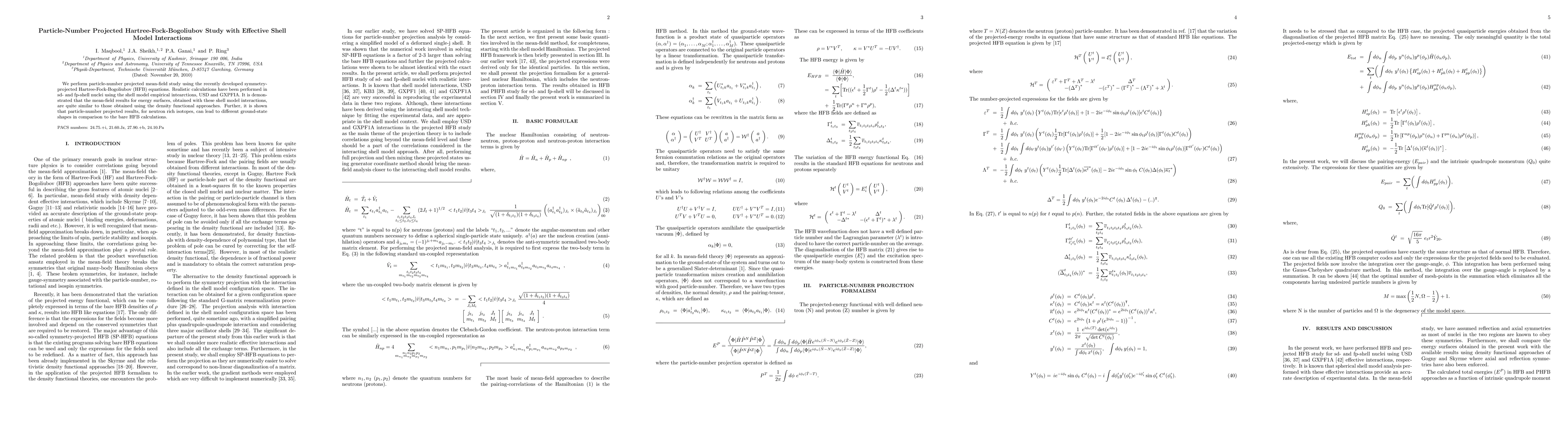 This study employs particle-number projected Hartree-Fock-Bogoliubov (HFB) equations to analyze sd- and fp-shell nuclei, using empirical shell model interactions. Results show that mean-field energy surfaces from shell model interactions closely match those from density functional approaches, and particle-number projection reveals different ground-state shapes for neutron-rich isotopes.