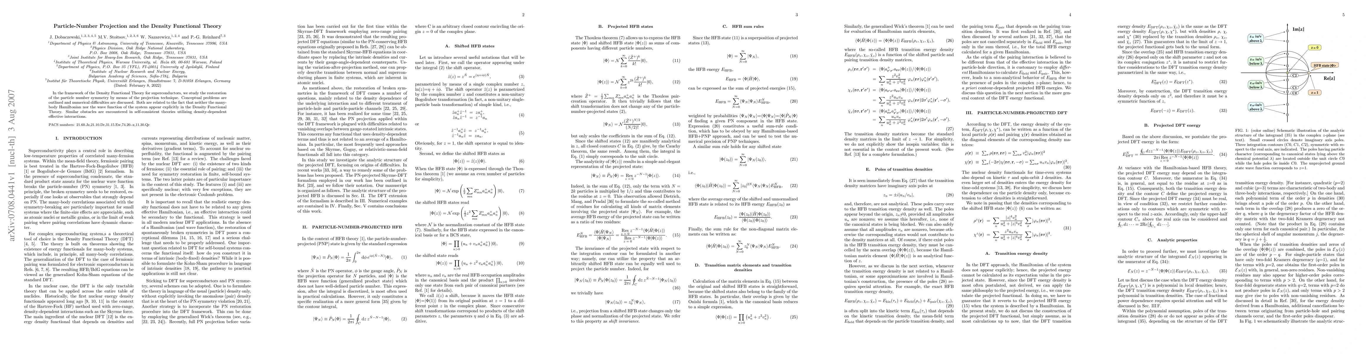 In the framework of the Density Functional Theory for superconductors, we study the restoration of the particle number symmetry by means of the projection technique. Conceptual problems are outlined and numerical difficulties are discussed. Both are related to the fact that neither the many-body Hamiltonian nor the wave function of the system appear explicitly in the Density Functional Theory. Similar obstacles are encountered in self-consistent theories utilizing density-dependent effective interactions.