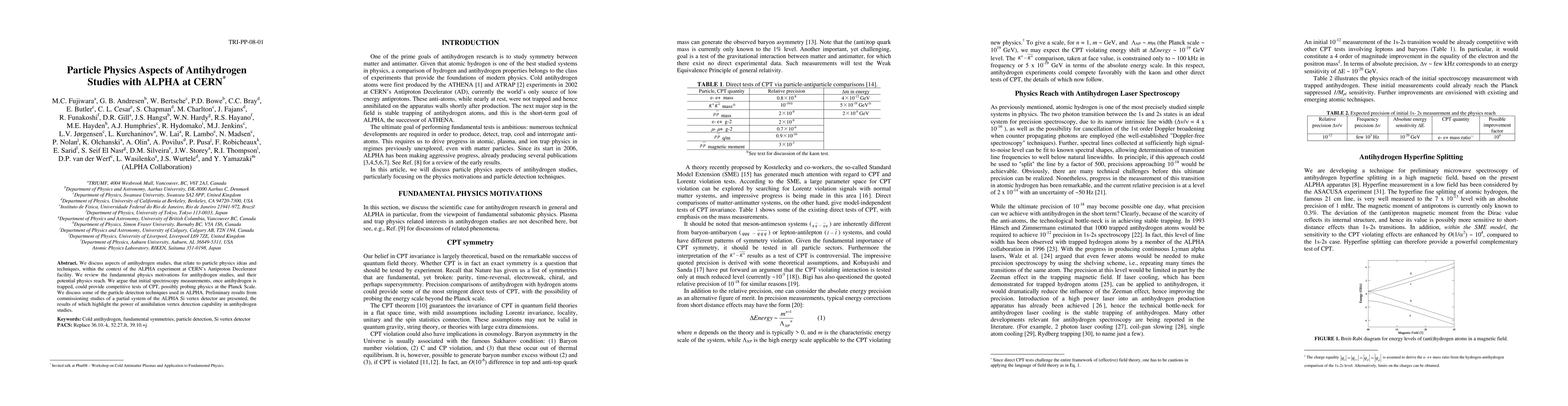 This paper explores particle physics implications of antihydrogen studies using the ALPHA experiment at CERN, emphasizing the potential for CPT tests and probing physics at the Planck Scale through spectroscopy. It also presents preliminary results from the ALPHA Si vertex detector, showcasing its capability in annihilation vertex detection.