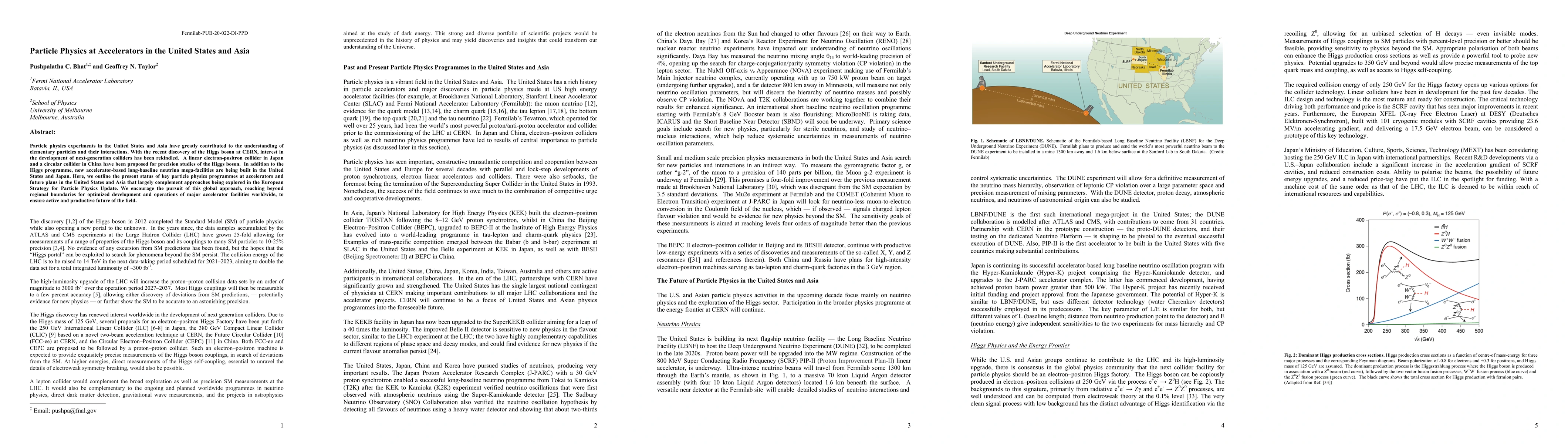 Particle physics experiments in US and Asian accelerators have advanced understanding of elementary particles and their interactions, with plans for next-generation colliders and long-baseline neutrino mega-facilities to complement the European Strategy for Particle Physics Update.