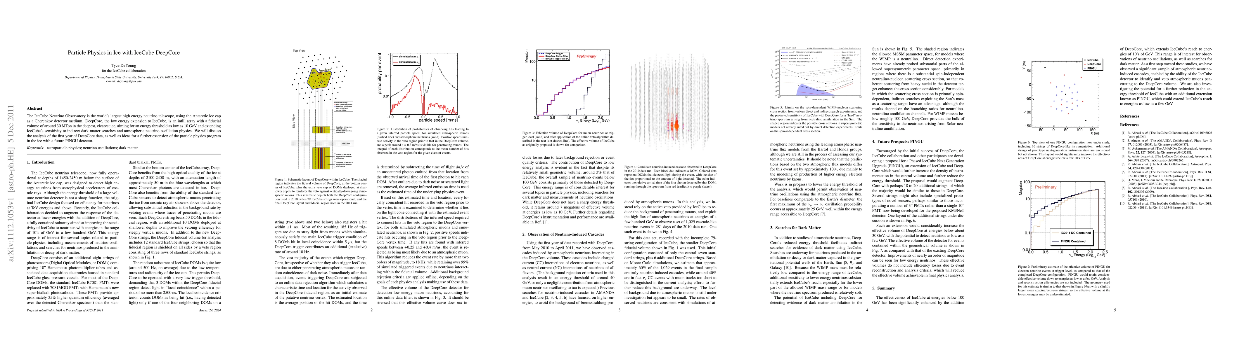 The IceCube Neutrino Observatory is the world's largest high energy neutrino telescope, using the Antarctic ice cap as a Cherenkov detector medium. DeepCore, the low energy extension to IceCube, is an infill array with a fiducial volume of around 30 MTon in the deepest, clearest ice, aiming for an energy threshold as low as 10 GeV and extending IceCube's sensitivity to indirect dark matter searches and atmospheric neutrino oscillation physics. We will discuss the analysis of the first year of DeepCore data, as well as ideas for a further extension of the particle physics program in the ice with a future PINGU detector.
