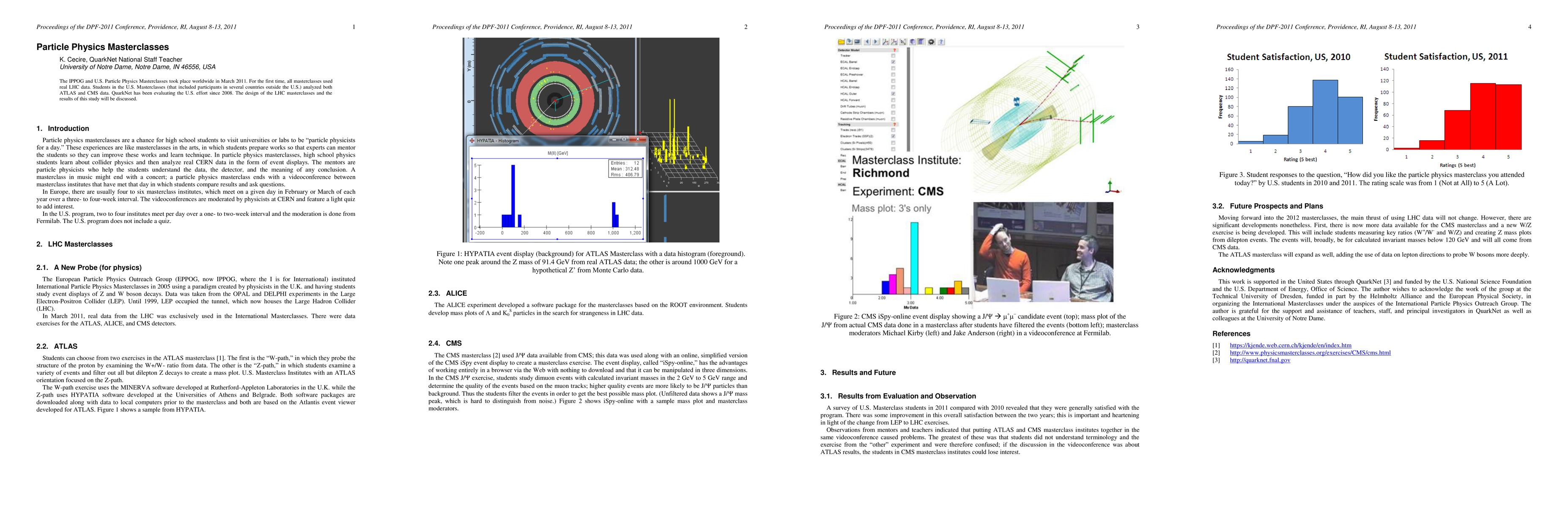The IPPOG and US Particle Physics Masterclasses used real LHC data for the first time in 2011, with students analyzing ATLAS and CMS data from around the world. The study evaluated the effectiveness of these masterclasses and their impact on particle physics education.