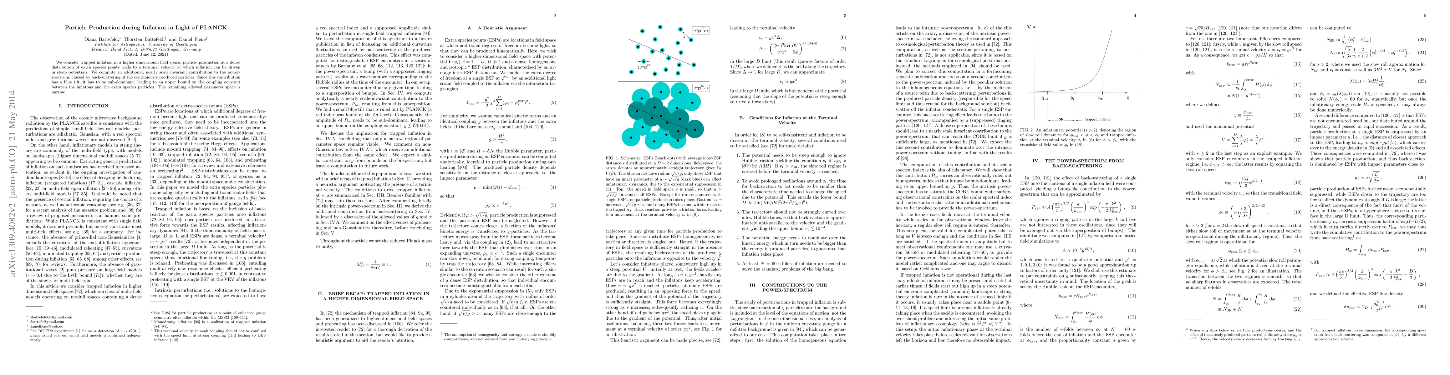 The research investigates trapped inflation in higher-dimensional field spaces, considering particle production at dense distributions of extra species points leading to a terminal velocity for inflation in steep potentials. The study computes an additional, nearly scale-invariant contribution to the power-spectrum caused by back-scattering of continuously produced particles.