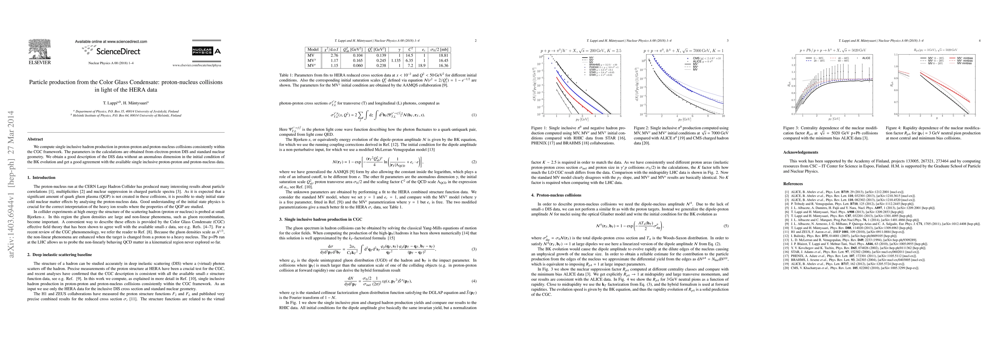 This paper studies single inclusive hadron production in proton-nucleus collisions using the Color Glass Condensate (CGC) framework, deriving parameters from HERA data and standard nuclear geometry. It achieves good agreement with both DIS data and available proton-proton and proton-nucleus collision data without requiring an anomalous dimension.