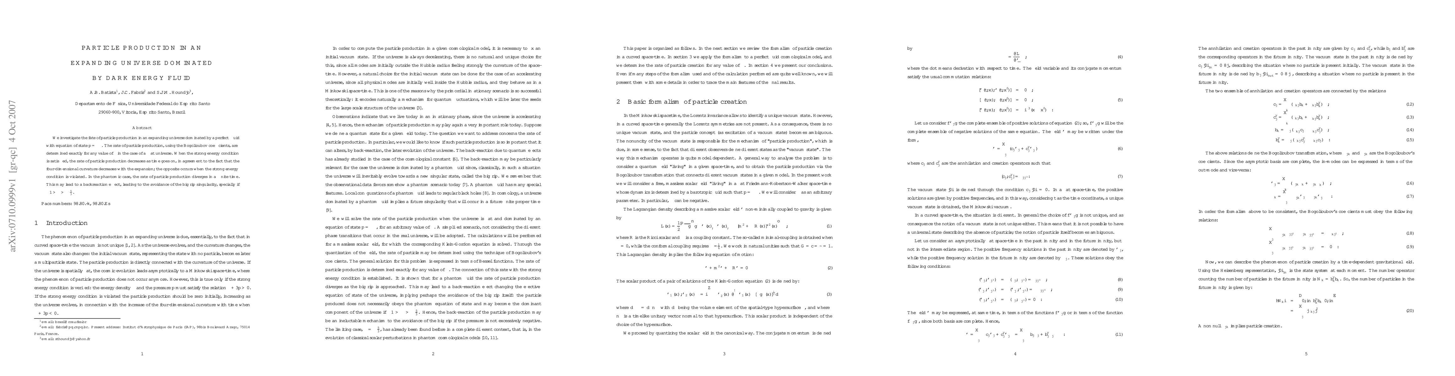 We investigate the fate of particle production in an expanding universe dominated by a perfect fluid with equation of state $p = \alpha\rho$. The rate of particle production, using the Bogolioubov coefficients, are determined exactly for any value of $\alpha$ in the case of a flat universe. When the strong energy condition is satisfied, the rate of particle production decreases as time goes on, in agreement to the fact that the four-dimensional curvature decreases with the expansion; the opposite occurs when the strong energy condition is violated. In the phantomic case, the rate of particle production diverges in a finite time. This may lead to a backreaction effect, leading to the avoidance of the big rip singularity, specially if $- 1 > \alpha > - {5/3}$.