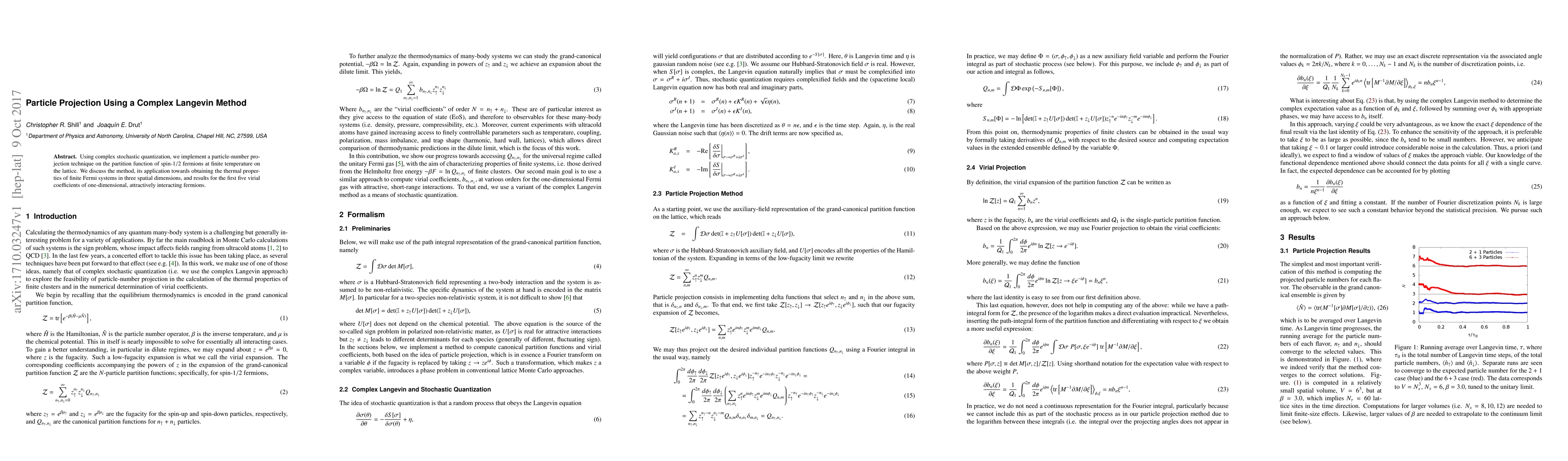 Using complex stochastic quantization, we implement a particle-number projection technique on the partition function of spin-1/2 fermions at finite temperature on the lattice. We discuss the method, its application towards obtaining the thermal properties of finite Fermi systems in three spatial dimensions, and results for the first five virial coefficients of one-dimensional, attractively interacting fermions.