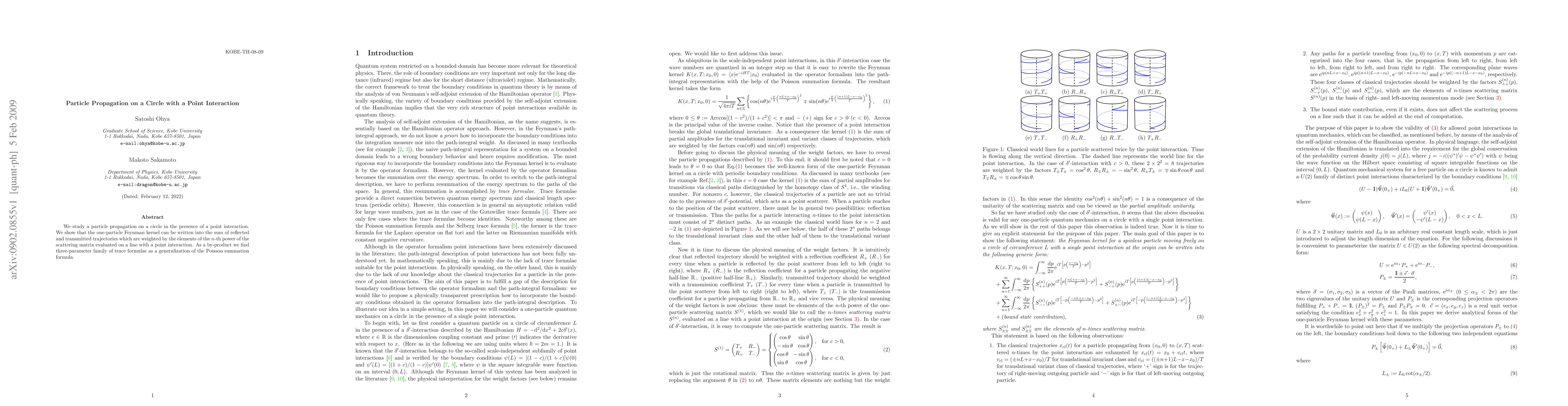 This paper explores particle propagation on a circular path influenced by a point interaction, demonstrating that the Feynman kernel decomposes into reflected and transmitted trajectories weighted by the scattering matrix's n-th power. It also derives a three-parameter family of trace formulae, extending the Poisson summation formula.