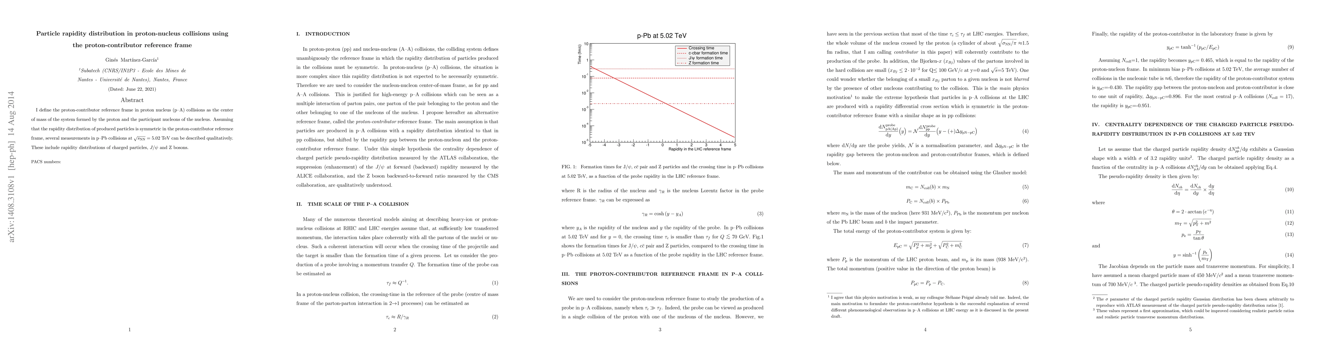 I define the proton-contributor reference frame in proton nucleus (p--A) collisions as the center of mass of the system formed by the proton and the participant nucleons of the nucleus. Assuming that the rapidity distribution of produced particles is symmetric in the proton-contributor reference frame, several measurements in p-Pb collisions at $\sqrt{s_{\rm NN}} = 5.02 {\rm TeV}$ can be described qualitatively. These include rapidity distributions of charged particles, $J/\psi$ and Z bosons.