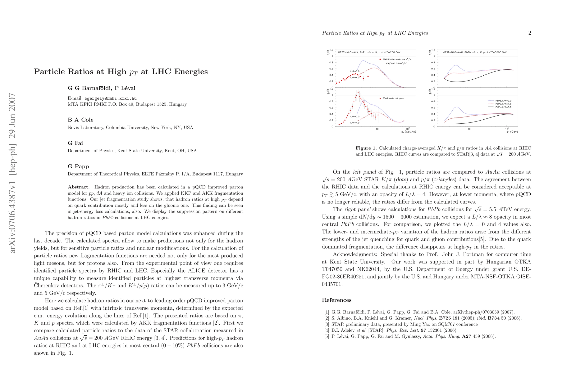 Hadron production has been calculated in a pQCD improved parton model for pp, dA and heavy ion collisions. We applied KKP and AKK fragmentation functions. Our jet fragmentation study shows, that hadron ratios at high p_T depend on quark contribution mostly and less on the gluonic one. This finding can be seen in jet-energy loss calculations, also. We display the suppression pattern on different hadron ratios in PbPb collisions at LHC energies.