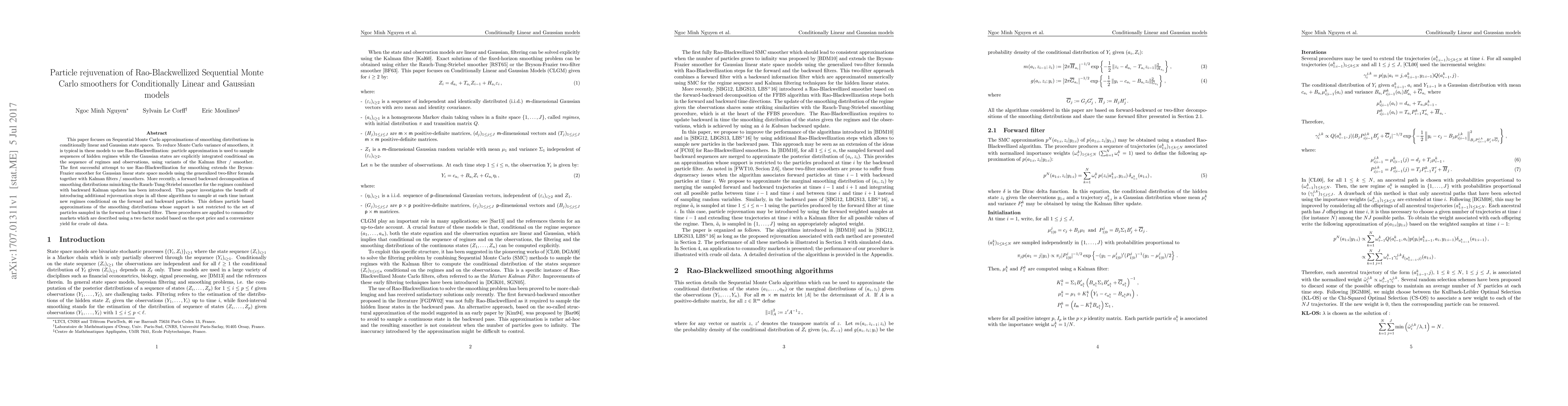This paper explores the use of particle rejuvenation in Rao-Blackwellized Sequential Monte Carlo (SMC) smoothers for conditionally linear and Gaussian models, aiming to reduce Monte Carlo variance and improve sampling efficiency. The study applies these rejuvenated SMC methods to a two-factor model of commodity markets for crude oil data.