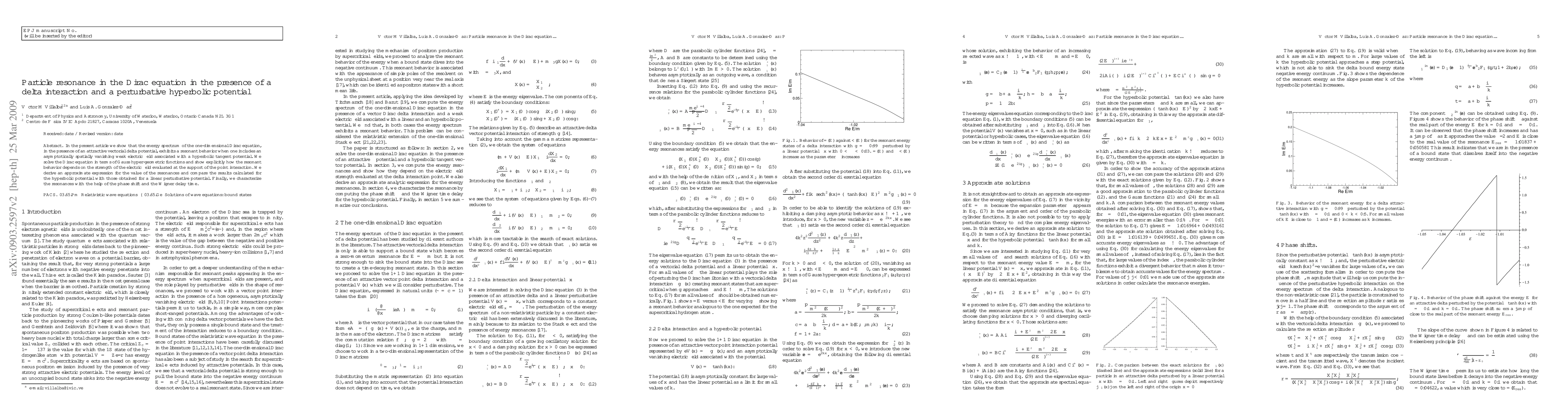 This paper investigates the resonant behavior in the one-dimensional Dirac equation under an attractive delta potential and a perturbative hyperbolic potential. It derives an approximate expression for the resonances and compares them with those from a linear potential, characterizing the resonances using phase shift and Wigner delay time.
