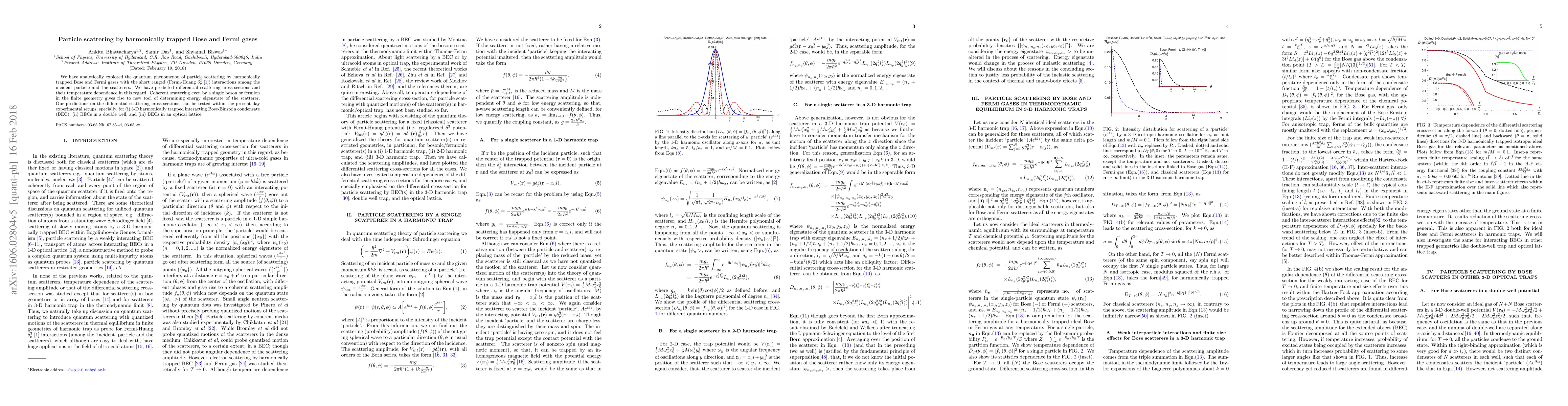 The paper presents a detailed analytical treatment of particle scattering by harmonically trapped Bose and Fermi gases, including temperature-dependent scattering cross-sections and their experimental testability.