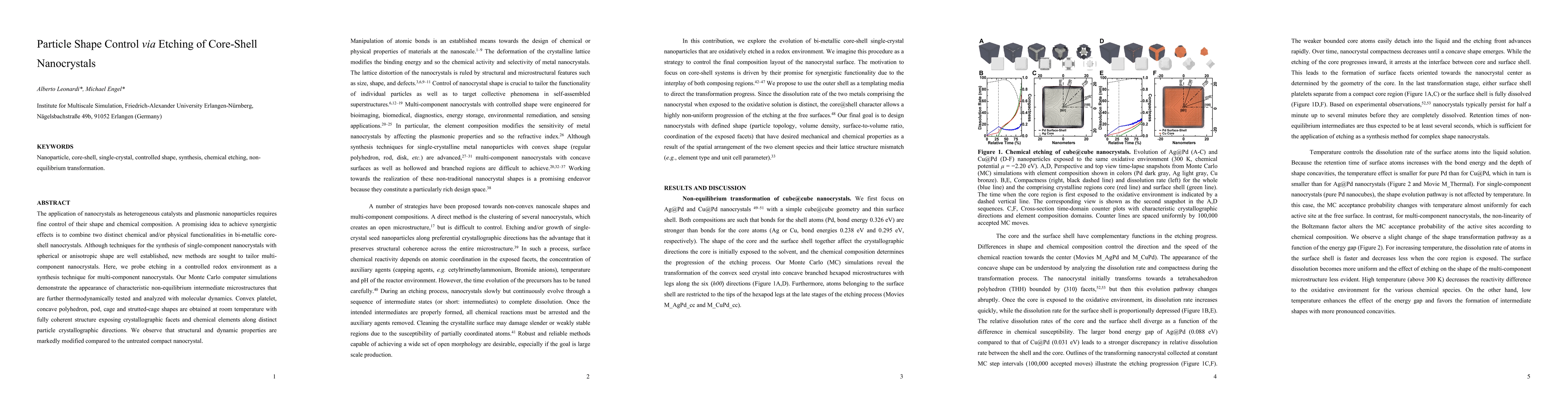 The development and application of a combined Monte Carlo and molecular dynamics approach to simulate and analyze the etching process of core-shell nanocrystals in a controlled redox environment.