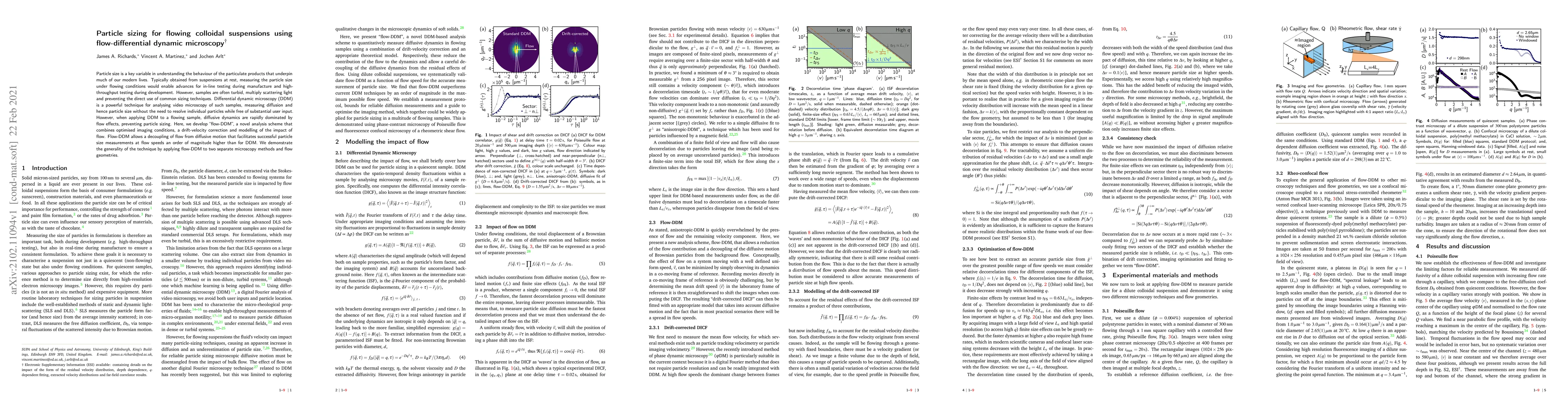 This paper introduces "flow-DDM," a novel technique that enhances differential dynamic microscopy to measure particle size in flowing colloidal suspensions. By decoupling flow from diffusive motion, flow-DDM enables particle sizing at higher flow speeds, demonstrating its effectiveness across different microscopy methods and flow geometries.