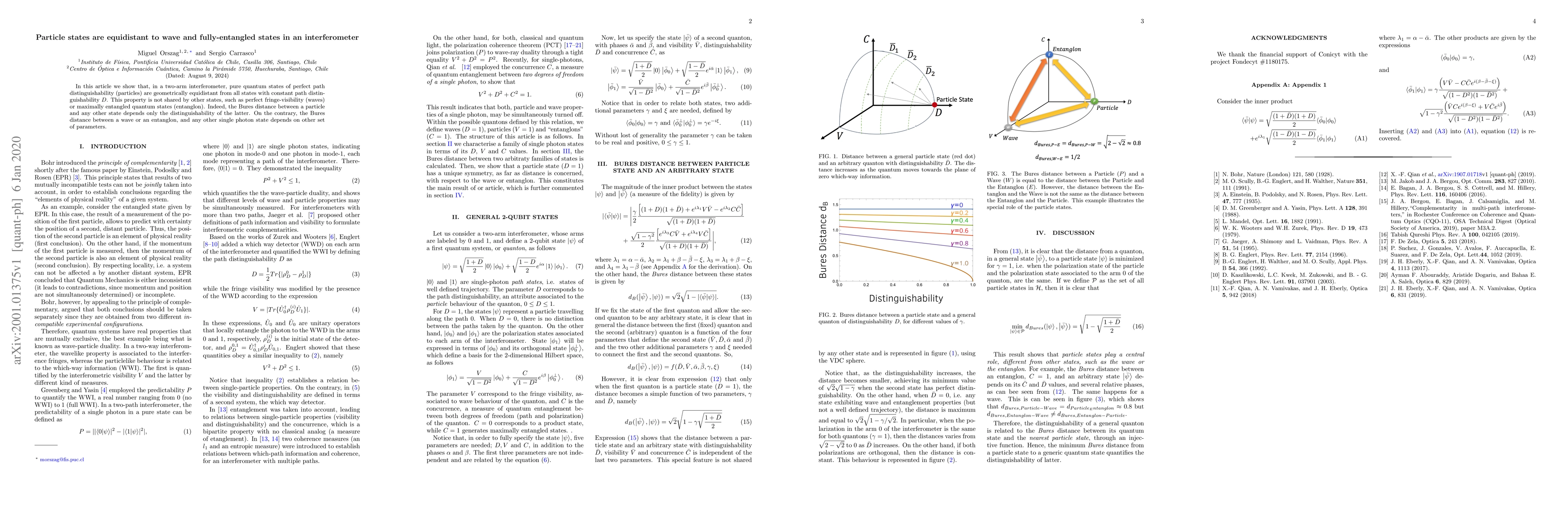 In this article we show that, in a two-arm interferometer, pure quantum states of perfect path distinguishability (particles) are geometrically equidistant from all states with constant path distinguishability D. This property is not shared by other states, such as perfect fringe-visibility (waves) or maximally entangled quantum states (entanglon). Indeed, the Bures distance between a particle and any other state depends only the distinguishability of the latter. On the contrary, the Bures distance between a wave or an entanglon, and any other single photon state depends on other set of parameters.