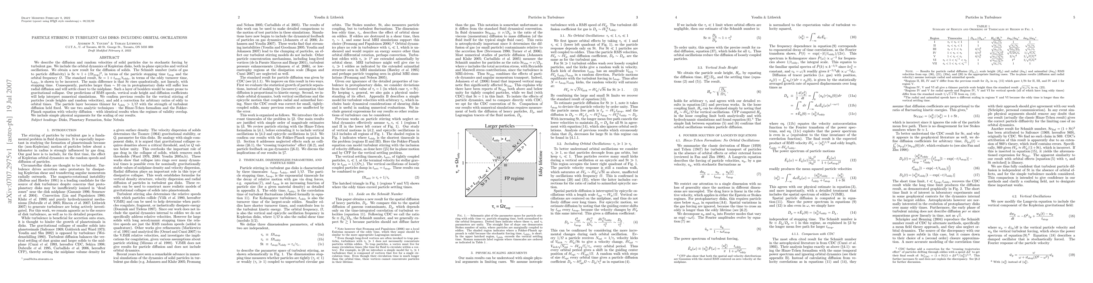 We describe the diffusion and random velocities of solid particles due to stochastic forcing by turbulent gas. We include the orbital dynamics of Keplerian disks, both in-plane epicycles and vertical oscillations. We obtain a new result for the diffusion of solids. The Schmidt number (ratio of gas to particle diffusivity) is Sc = 1 + (Omega t_stop)^2, in terms of the particle stopping time, t_stop, and the orbital frequency, Omega. The standard result, Sc = 1 + t_stop/t_eddy, in terms of the eddy turnover time, t_eddy, is shown to be incorrect. The main difference is that Sc rises quadratically, not linearly, with stopping time. Consequently, particles larger than ~ 10 cm in protoplanetary disks will suffer less radial diffusion and will settle closer to the midplane. Such a layer of boulders would be more prone to gravitational collapse. Our predictions of RMS speeds, vertical scale height and diffusion coefficients will help interpret numerical simulations. We confirm previous results for the vertical stirring of particles (scale heights and random velocities), and add a correction for arbitrary ratios of eddy to orbital times. The particle layer becomes thinner for t_eddy > 1/Omega, with the strength of turbulent diffusion held fixed. We use two analytic techniques -- the Hinze-Tchen formalism and the Fokker-Planck equation with velocity diffusion -- with identical results when the regimes of validity overlap. We include simple physical arguments for the scaling of our results.