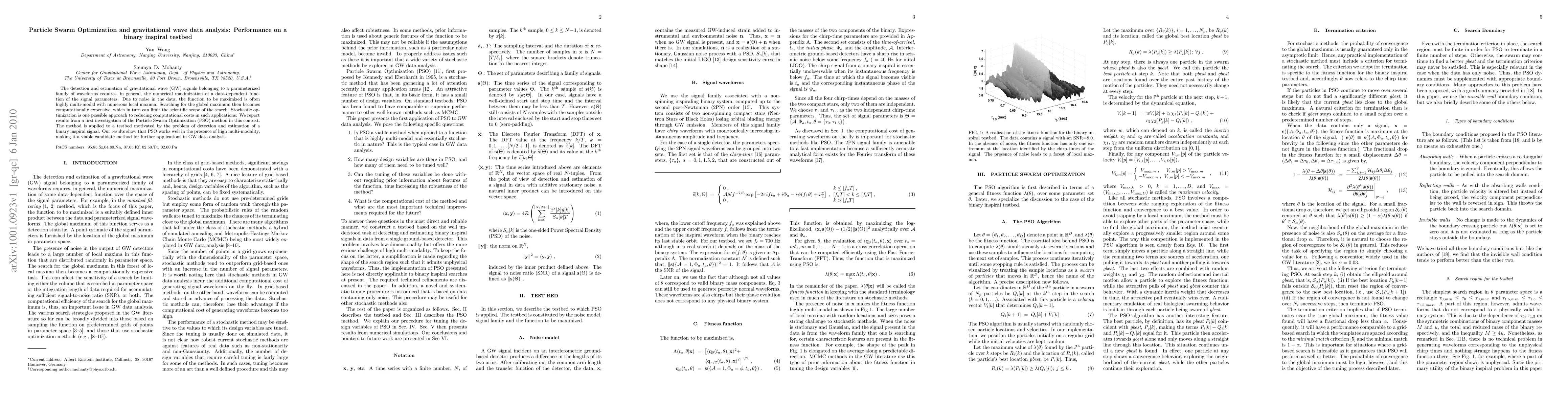 This paper investigates the application of Particle Swarm Optimization (PSO) to the computationally challenging task of detecting and estimating gravitational wave signals in noisy data. The results indicate that PSO effectively handles the multi-modal nature of the optimization problem, suggesting its potential for future gravitational wave data analysis.