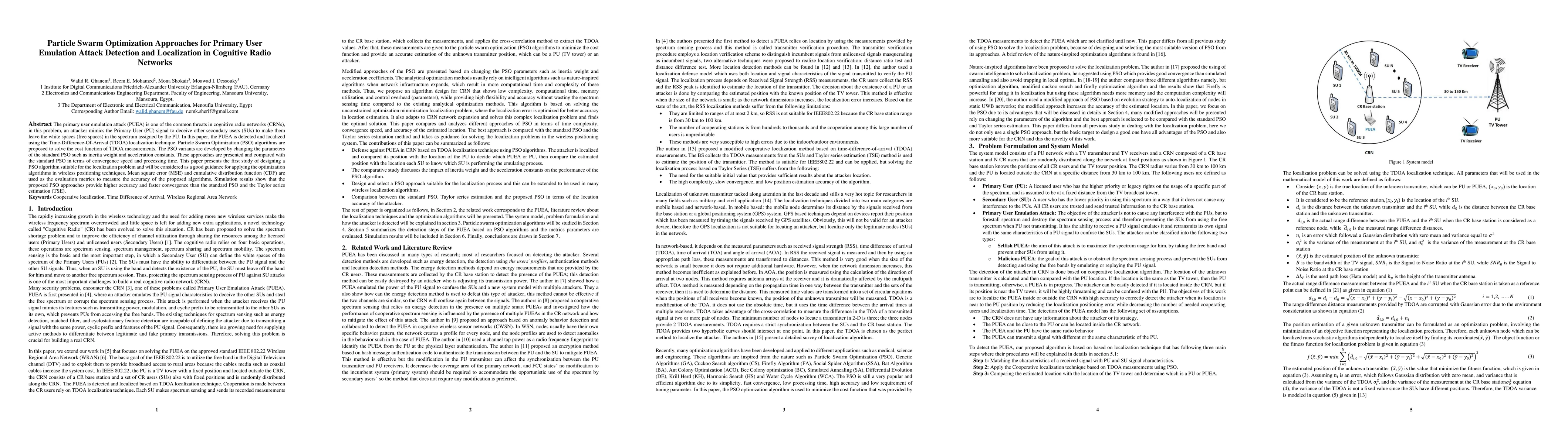 Researchers developed new Particle Swarm Optimization algorithms to detect and localize Primary User Emulation Attacks in Cognitive Radio Networks, achieving higher accuracy and faster convergence than traditional methods.