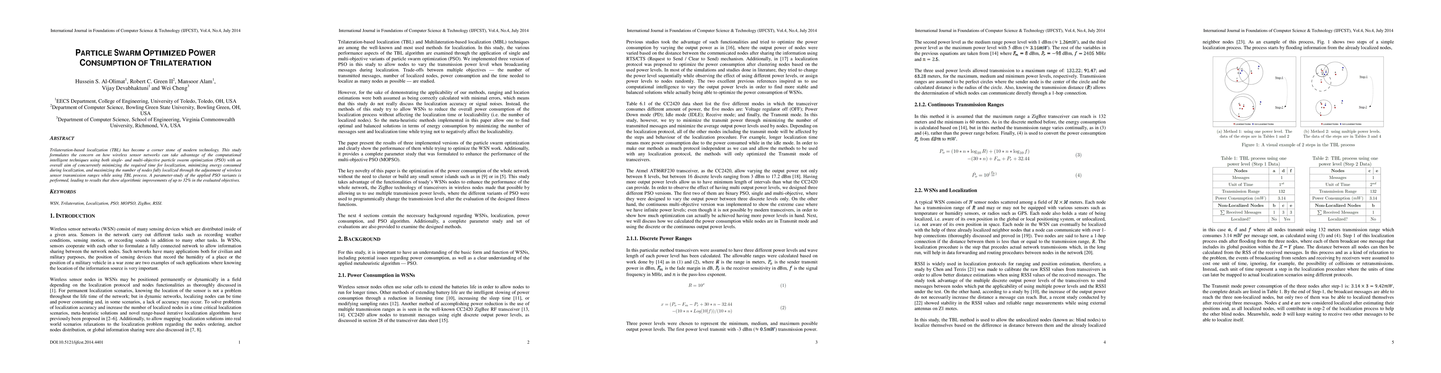 Trilateration-based localization (TBL) has become a corner stone of modern technology. This study formulates the concern on how wireless sensor networks can take advantage of the computational intelligent techniques using both single- and multi-objective particle swarm optimization (PSO) with an overall aim of concurrently minimizing the required time for localization, minimizing energy consumed during localization, and maximizing the number of nodes fully localized through the adjustment of wireless sensor transmission ranges while using TBL process. A parameter-study of the applied PSO variants is performed, leading to results that show algorithmic improvements of up to 32% in the evaluated objectives.