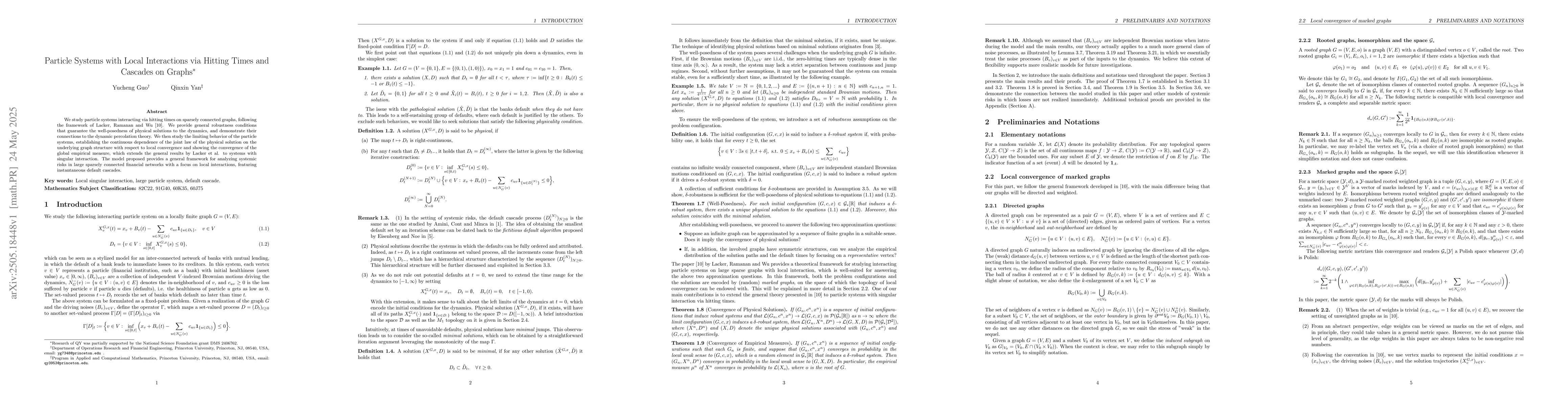 The paper presents a general framework for particle systems with local interactions via hitting times on graphs, providing robustness conditions and convergence results.