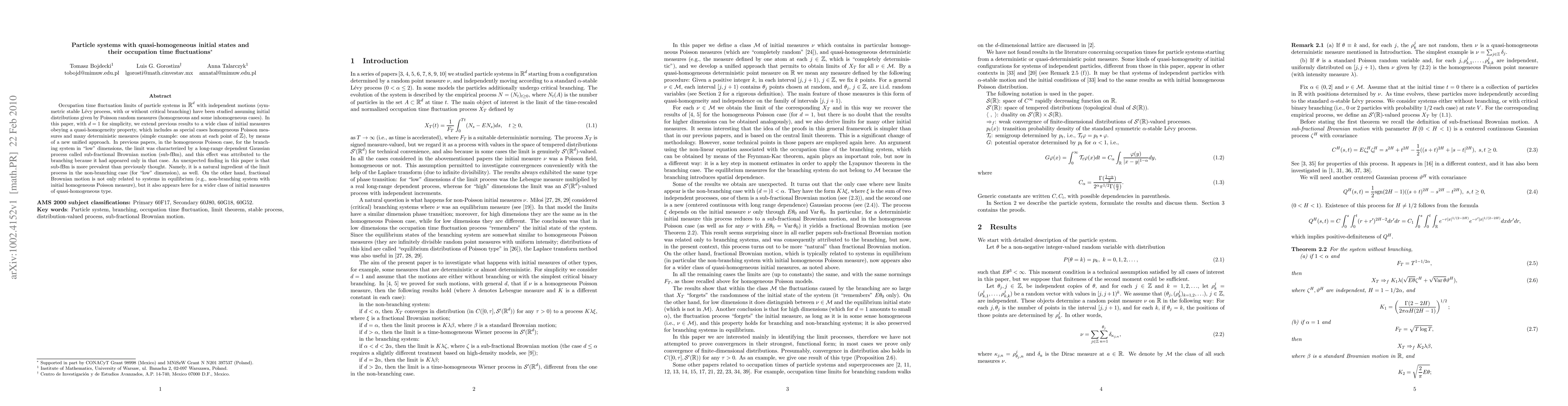 Occupation time fluctuation limits of particle systems in R^d with independent motions (symmetric stable Levy process, with or without critical branching) have been studied assuming initial distributions given by Poisson random measures (homogeneous and some inhomogeneous cases). In this paper, with d=1 for simplicity, we extend previous results to a wide class of initial measures obeying a quasi-homogeneity property, which includes as special cases homogeneous Poisson measures and many deterministic measures (simple example: one atom at each point of Z), by means of a new unified approach. In previous papers, in the homogeneous Poisson case, for the branching system in "low" dimensions, the limit was characterized by a long-range dependent Gaussian process called sub-fractional Brownian motion (sub-fBm), and this effect was attributed to the branching because it had appeared only in that case. An unexpected finding in this paper is that sub-fBm is more prevalent than previously thought. Namely, it is a natural ingredient of the limit process in the non-branching case (for "low" dimension), as well. On the other hand, fractional Brownian motion is not only related to systems in equilibrium (e.g., non-branching system with initial homogeneous Poisson measure), but it also appears here for a wider class of initial measures of quasi-homogeneous type.