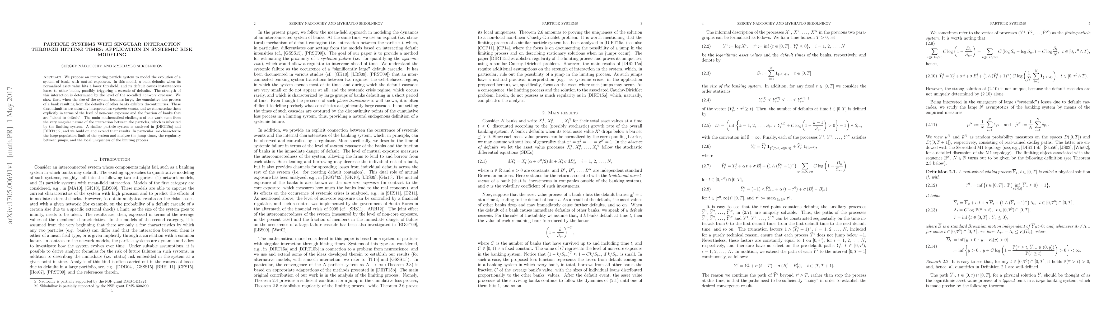 This research paper proposes a new model for systemic risk in banking systems, using particle systems with singular interactions to capture the sudden, catastrophic effects of bank defaults. The study reveals characteristics of these events, including jump times and regularity, which can help predict and mitigate systemic risk.