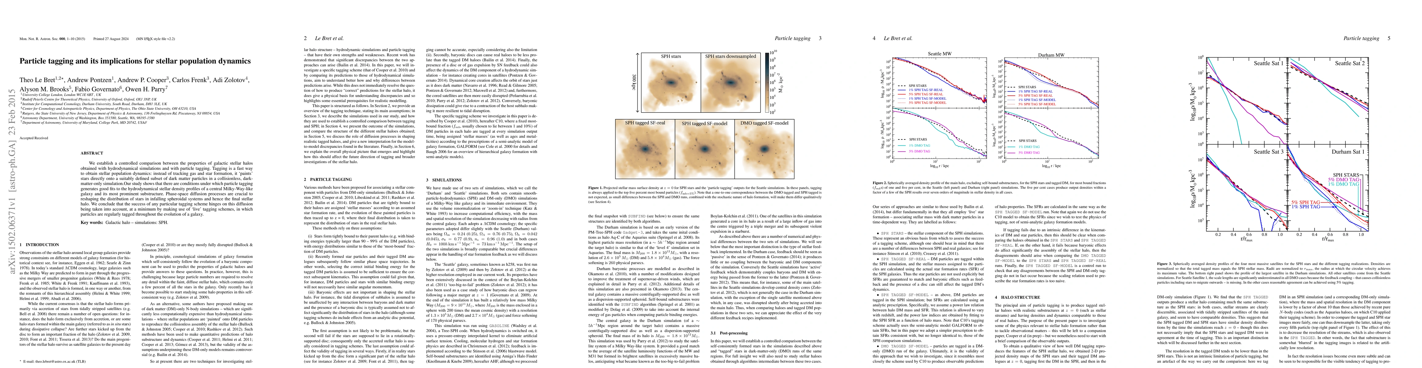 We establish a controlled comparison between the properties of galactic stellar halos obtained with hydrodynamical simulations and with `particle tagging'. Tagging is a fast way to obtain stellar population dynamics: instead of tracking gas and star formation, it `paints' stars directly onto a suitably defined subset of dark matter particles in a collisionless, dark-matter-only simulation.Our study shows that there are conditions under which particle tagging generates good fits to the hydrodynamical stellar density profiles of a central Milky-Way-like galaxy and its most prominent substructure. Phase-space diffusion processes are crucial to reshaping the distribution of stars in infalling spheroidal systems and hence the final stellar halo. We conclude that the success of any particular tagging scheme hinges on this diffusion being taken into account, at a minimum by making use of `live' tagging schemes, in which particles are regularly tagged throughout the evolution of a galaxy.
