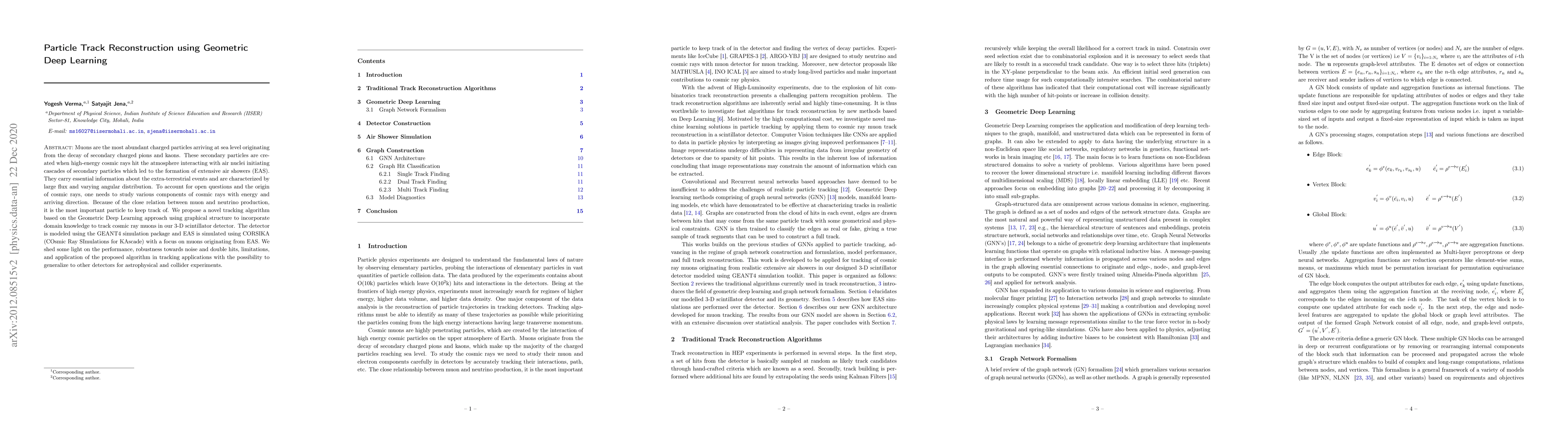 Muons are the most abundant charged particles arriving at sea level originating from the decay of secondary charged pions and kaons. These secondary particles are created when high-energy cosmic rays hit the atmosphere interacting with air nuclei initiating cascades of secondary particles which led to the formation of extensive air showers (EAS). They carry essential information about the extra-terrestrial events and are characterized by large flux and varying angular distribution. To account for open questions and the origin of cosmic rays, one needs to study various components of cosmic rays with energy and arriving direction. Because of the close relation between muon and neutrino production, it is the most important particle to keep track of. We propose a novel tracking algorithm based on the Geometric Deep Learning approach using graphical structure to incorporate domain knowledge to track cosmic ray muons in our 3-D scintillator detector. The detector is modeled using the GEANT4 simulation package and EAS is simulated using CORSIKA (COsmic Ray SImulations for KAscade) with a focus on muons originating from EAS. We shed some light on the performance, robustness towards noise and double hits, limitations, and application of the proposed algorithm in tracking applications with the possibility to generalize to other detectors for astrophysical and collider experiments.