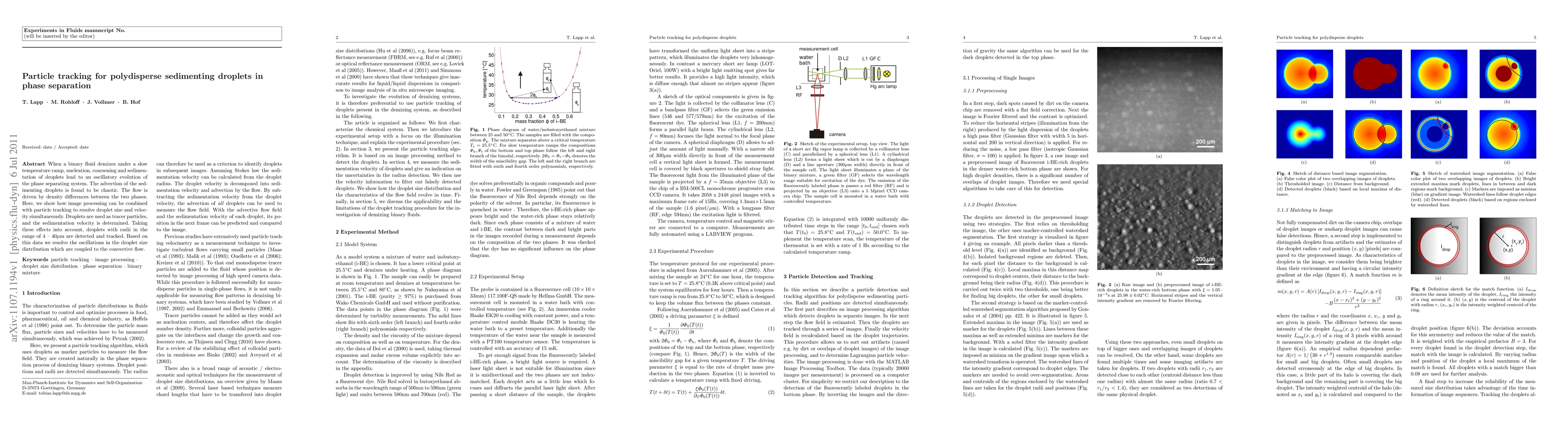 When a binary fluid demixes under a slow temperature ramp, nucleation, coarsening and sedimentation of droplets lead to an oscillatory evolution of the phase separating system. The advection of the sedimenting droplets is found to be chaotic. The flow is driven by density differences between the two phases. Here, we show how image processing can be combined with particle tracking to resolve droplet size and velocity simultaneously. Droplets are used as tracer particles, and the sedimentation velocity is determined. Taking these effects into account, droplets with radii in the range of 4 -- 40 micrometers are detected and tracked. Based on this data we resolve the oscillations in the droplet size distribution which are coupled to the convective flow.