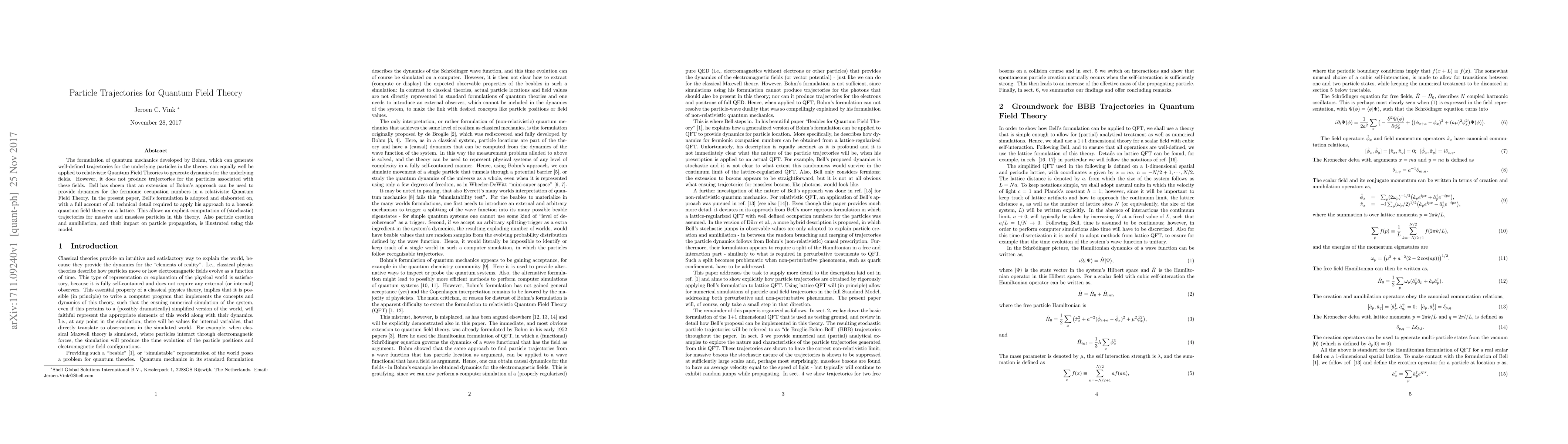 Researchers develop a method to generate particle trajectories in relativistic Quantum Field Theories, enabling simulations of particle creation, annihilation, and propagation, using Bohm's original formulation as the foundation.