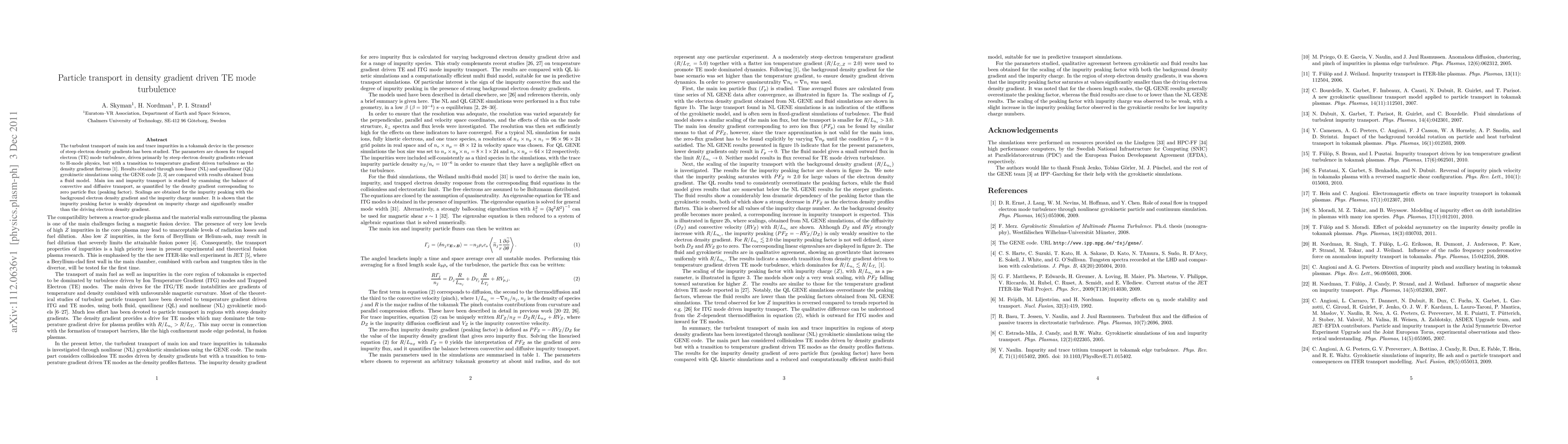 This paper investigates the turbulent transport of ions and impurities in a tokamak under steep electron density gradients, focusing on trapped electron (TE) mode turbulence. Results from gyrokinetic simulations and fluid models show that impurity transport is weakly dependent on impurity charge and significantly less than the driving electron density gradient.