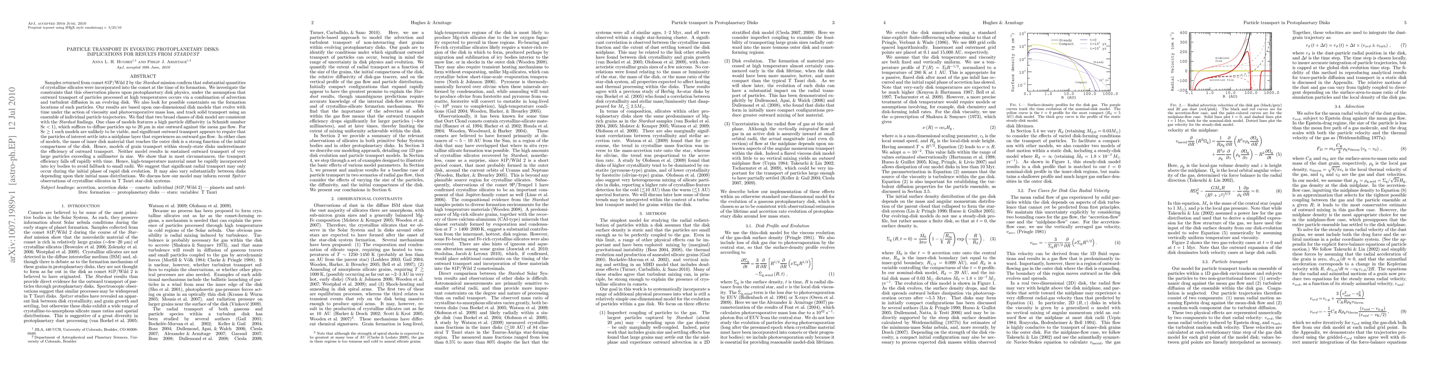 This paper investigates the transport mechanisms of crystalline silicates in evolving protoplanetary disks, finding that high-temperature particles can be advected outward via advection and turbulent diffusion. Models with low particle diffusivity (Sc < 1) are consistent with Stardust findings, suggesting rapid outward transport during early disk evolution is crucial for incorporating such materials into comets.