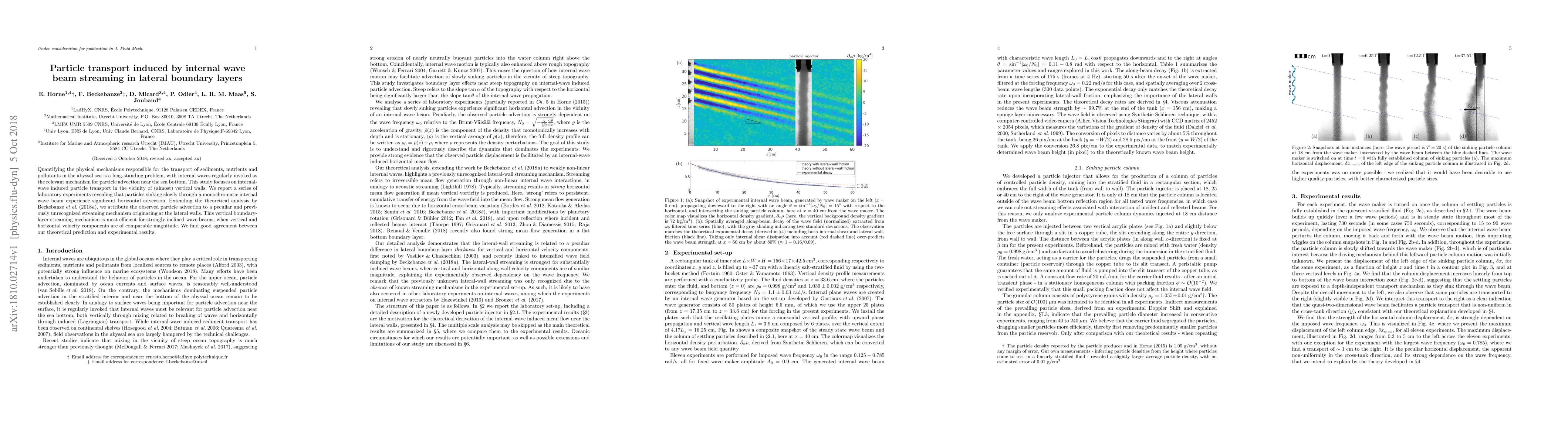Quantifying the physical mechanisms responsible for the transport of sediments, nutrients and pollutants in the abyssal sea is a long-standing problem, with internal waves regularly invoked as the relevant mechanism for particle advection near the sea bottom. This study focuses on internal-wave induced particle transport in the vicinity of (almost) vertical walls. We report a series of laboratory experiments revealing that particles sinking slowly through a monochromatic internal wave beam experience significant horizontal advection. Extending the theoretical analysis by Beckebanze et al (2018a), we attribute the observed particle advection to a peculiar and previously unrecognized streaming mechanism originating at the lateral walls. This vertical boundary-layer streaming mechanism is most efficient for strongly inclined wave beams, when vertical and horizontal velocity components are of comparable magnitude. We find good agreement between our theoretical prediction and experimental results.