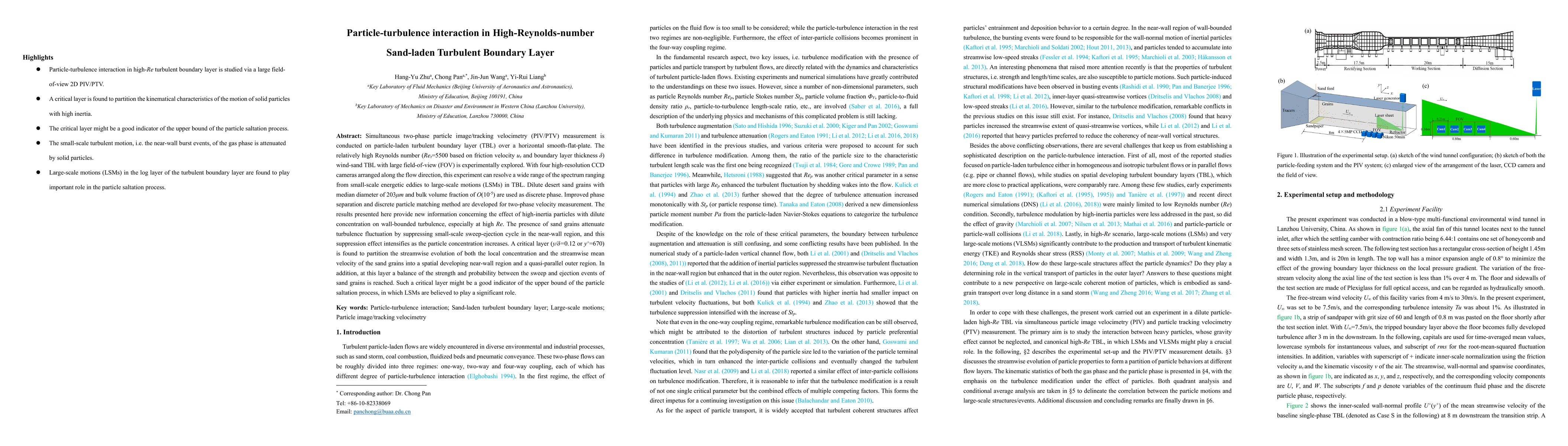 This study investigates the interaction between high-inertia sand particles and turbulence in a high-Reynolds-number sand-laden turbulent boundary layer using advanced PIV/PTV techniques. The presence of sand grains is found to suppress turbulence fluctuations, particularly in the near-wall region, with this effect intensifying as particle concentration increases.