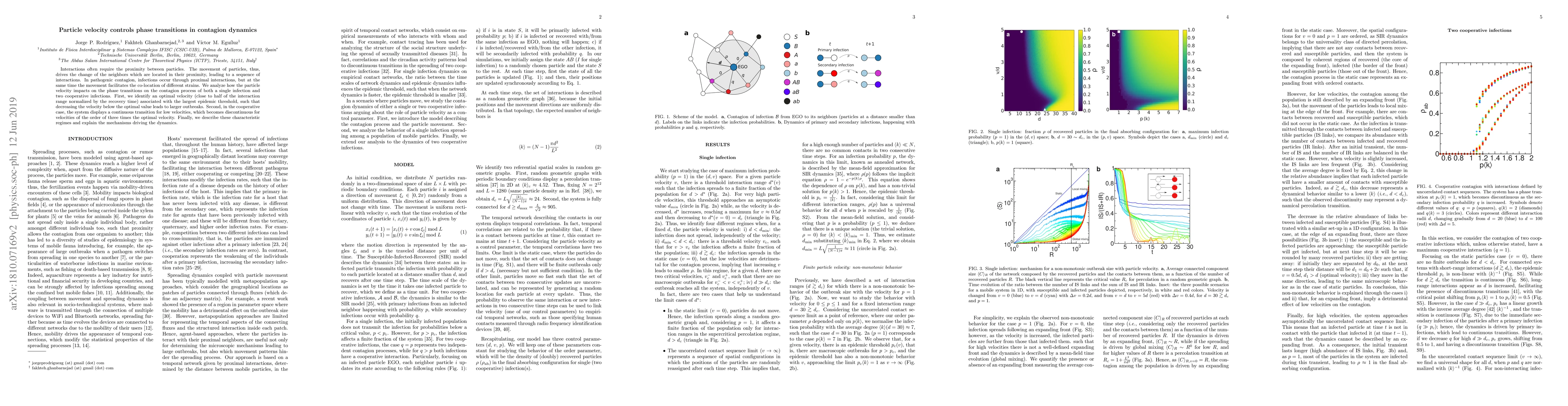 This research identifies an optimal particle velocity that maximizes the epidemic threshold in contagion dynamics, preventing large outbreaks. It also reveals distinct phase transition regimes for single and cooperative infections, with a continuous transition at low velocities and a discontinuous one at higher velocities, roughly three times the optimal.