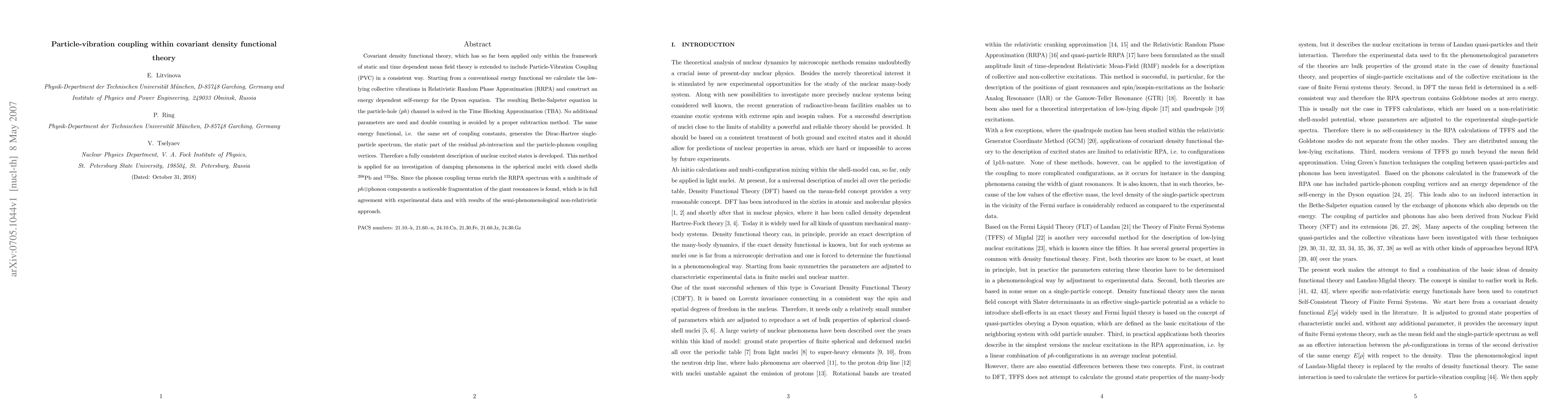 This paper extends covariant density functional theory to include Particle-Vibration Coupling (PVC), solving the Bethe-Salpeter equation in the Time Blocking Approximation to describe nuclear excited states consistently. The method reveals significant fragmentation of giant resonances in spherical nuclei, aligning well with experimental data.