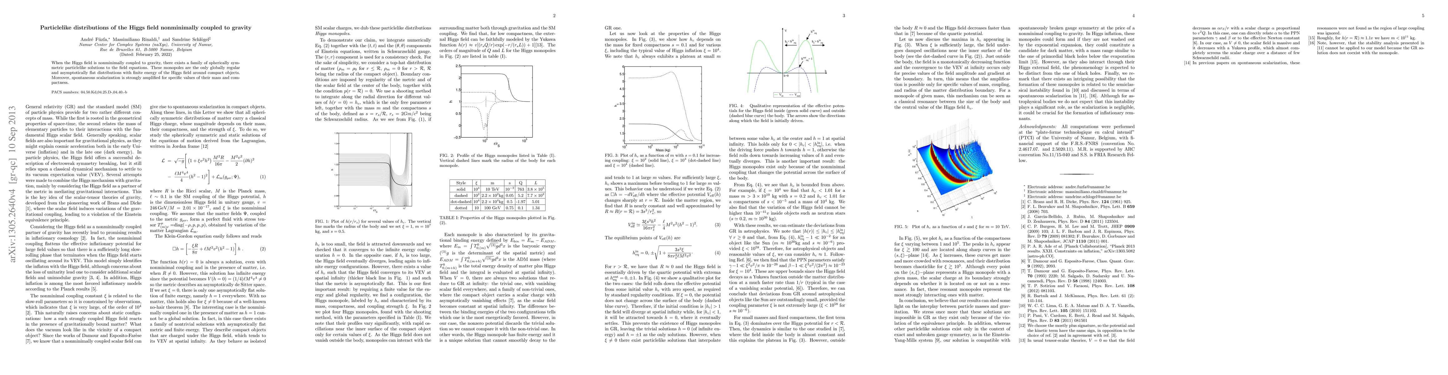 The Higgs field can form spherical, particle-like solutions that exist around compact objects, with certain values of mass and compactness amplifying spontaneous scalarization.