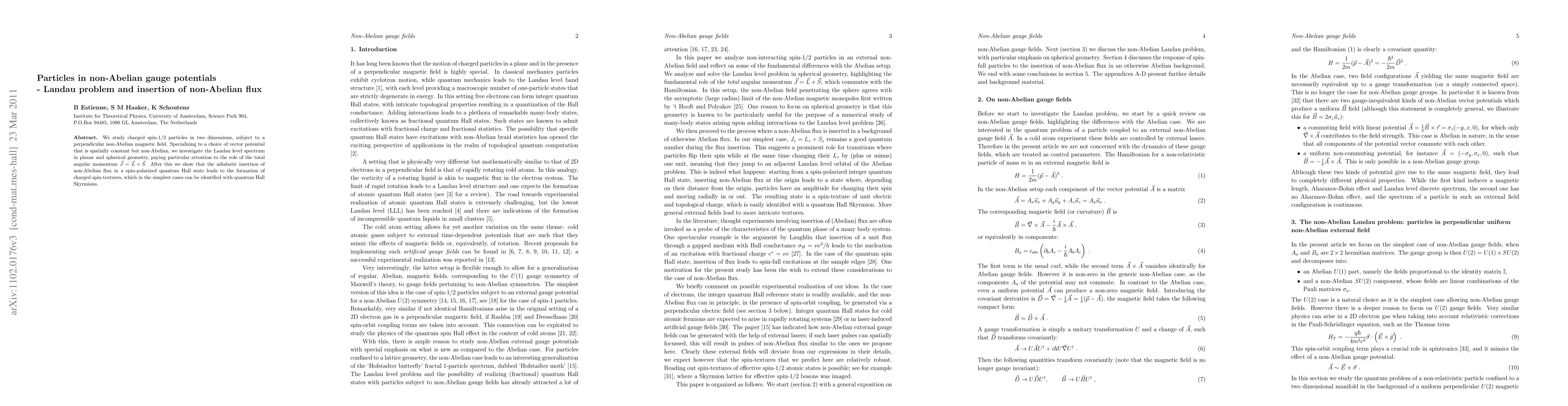 We study charged spin-1/2 particles in two dimensions, subject to a perpendicular non-Abelian magnetic field. Specializing to a choice of vector potential that is spatially constant but non-Abelian, we investigate the Landau level spectrum in planar and spherical geometry, paying particular attention to the role of the total angular momentum J = L +S. After this we show that the adiabatic insertion of non-Abelian flux in a spin-polarized quantum Hall state leads to the formation of charged spin-textures, which in the simplest cases can be identified with quantum Hall Skyrmions.