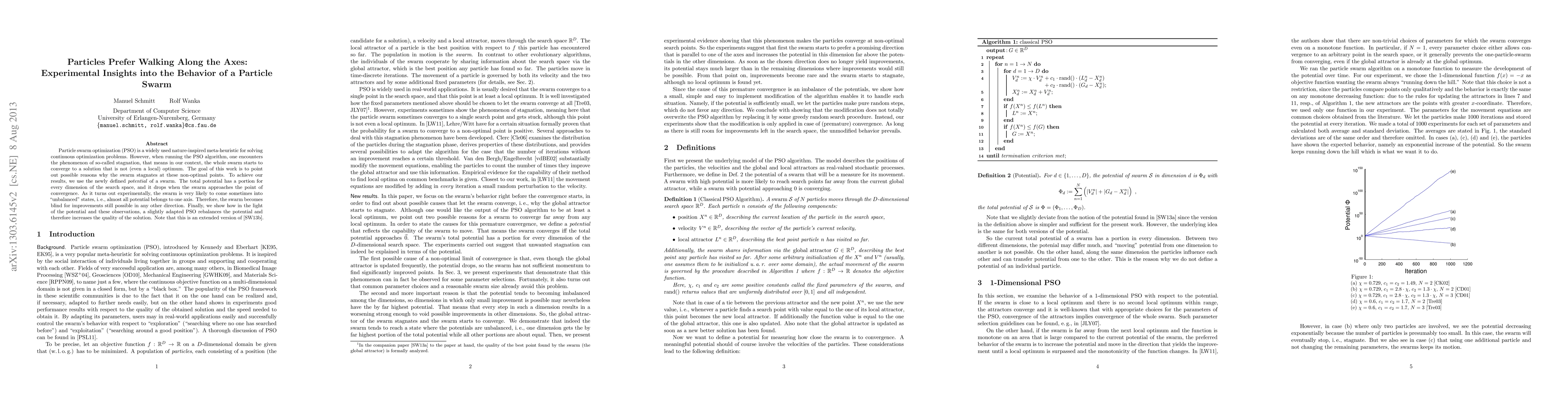 Particle swarm optimization (PSO) is a widely used nature-inspired meta-heuristic for solving continuous optimization problems. However, when running the PSO algorithm, one encounters the phenomenon of so-called stagnation, that means in our context, the whole swarm starts to converge to a solution that is not (even a local) optimum. The goal of this work is to point out possible reasons why the swarm stagnates at these non-optimal points. To achieve our results, we use the newly defined potential of a swarm. The total potential has a portion for every dimension of the search space, and it drops when the swarm approaches the point of convergence. As it turns out experimentally, the swarm is very likely to come sometimes into "unbalanced" states, i. e., almost all potential belongs to one axis. Therefore, the swarm becomes blind for improvements still possible in any other direction. Finally, we show how in the light of the potential and these observations, a slightly adapted PSO rebalances the potential and therefore increases the quality of the solution.