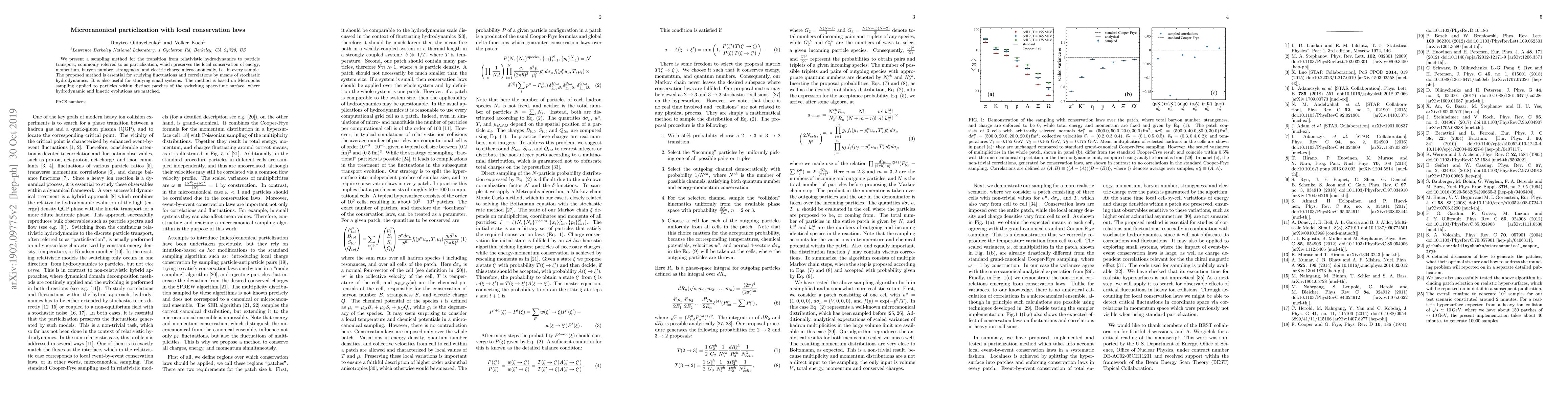 This paper introduces a novel Metropolis sampling method for particlization that preserves local event-by-event conservation laws in transitioning from relativistic hydrodynamics to particle transport, enabling the study of fluctuations and correlations in small systems. The method is applied to match hydrodynamics and kinetic evolutions within specific hypersurface patches.