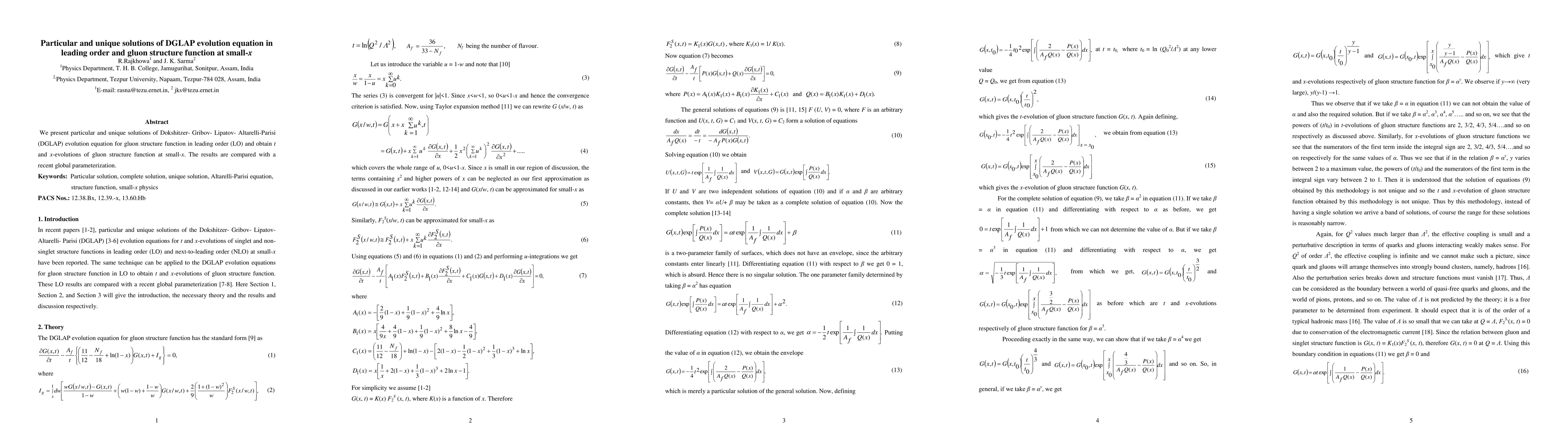 This paper presents unique solutions for the DGLAP evolution equation in leading order, specifically for the gluon structure function, and derives the t and x-evolutions at small-x. The findings are compared with a recent global parameterization to validate the results.