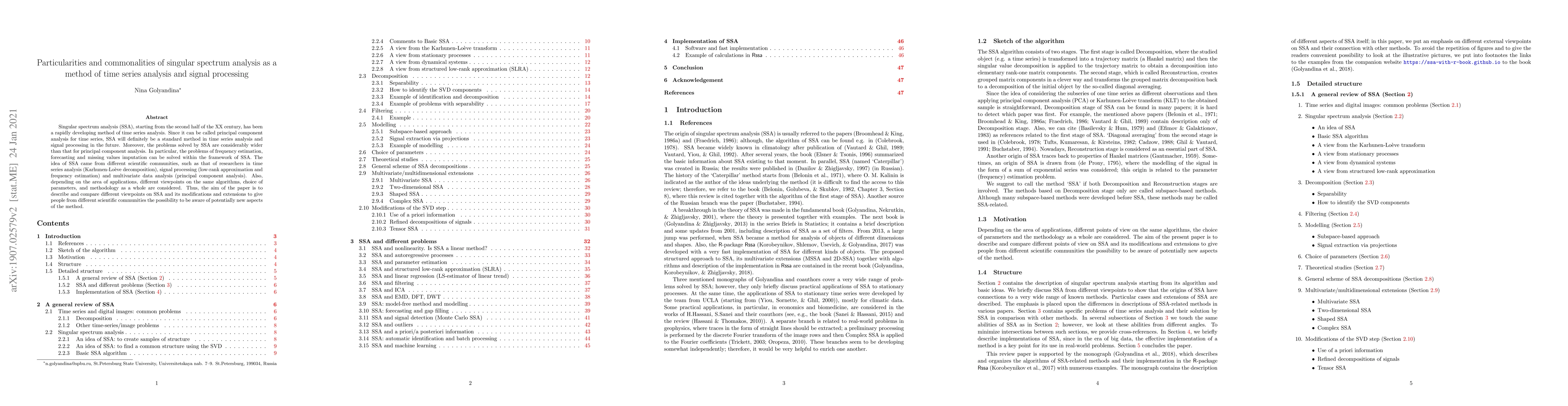 This paper explores the diverse applications and perspectives of Singular Spectrum Analysis (SSA) in time series analysis and signal processing, highlighting its potential as a standard method due to its versatility in frequency estimation, forecasting, and missing data imputation. It aims to bridge different scientific communities by comparing various viewpoints and modifications of SSA.