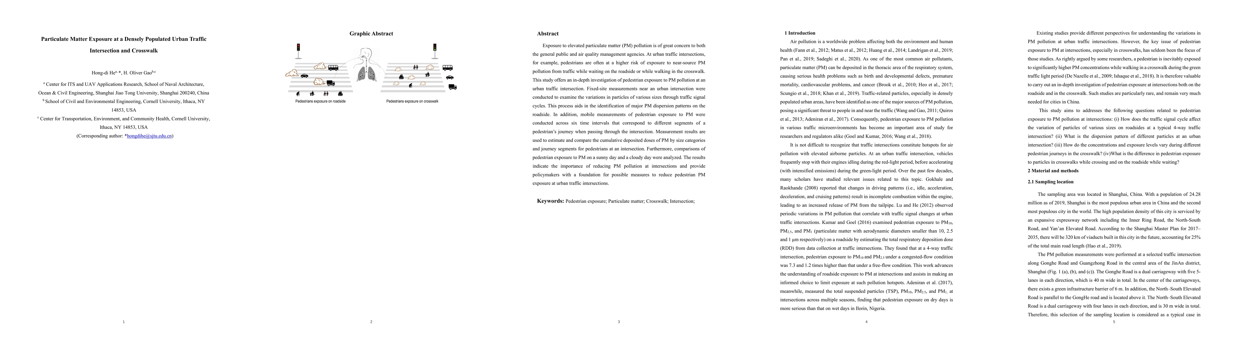 This study investigates pedestrian exposure to particulate matter pollution at urban traffic intersections through fixed-site and mobile measurements, revealing the importance of reducing PM pollution for healthier pedestrians. The results provide policymakers with a foundation for measures to reduce pedestrian PM exposure on sunny and cloudy days alike.