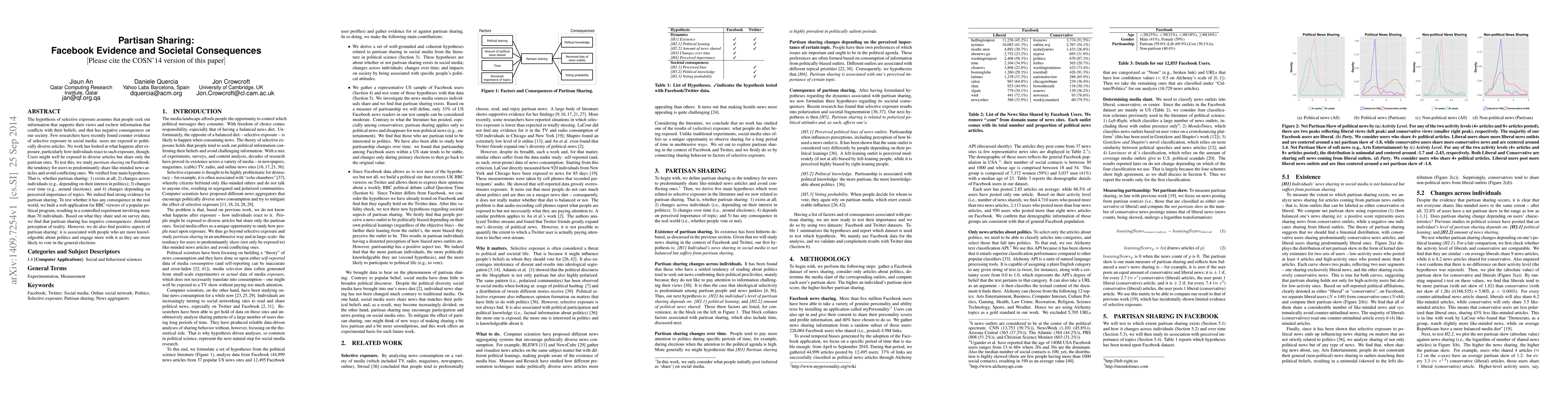 This paper investigates partisan sharing on Facebook, finding that users predominantly share like-minded news articles, which distorts their perception of reality. Despite this, partisan sharing is linked to higher political knowledge and engagement, including increased voting likelihood.